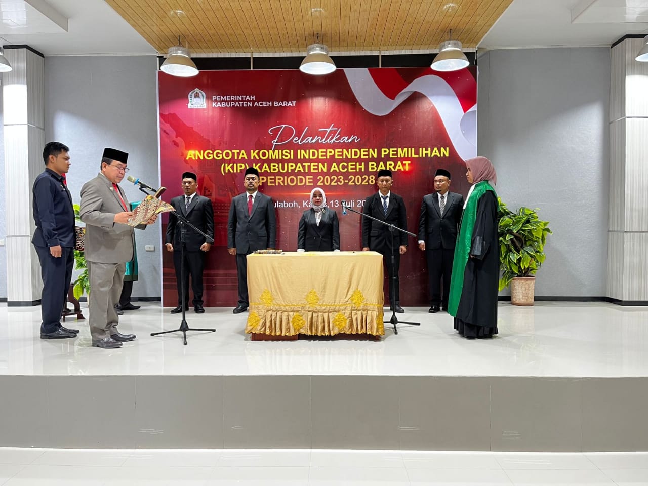 GLOBAL BERITA, MEULABOH— Penjabat Bupati Aceh Barat, Drs. Mahdi Efendi, Kamis (13-07-2023), secara resmi melantik sekaligus mengambil sumpah jabatan anggota Komisi Independen Pemilihan (KIP) Kabupaten Aceh Barat periode 2023-2028. Acara itu dilaksanakan di aula Cabang Dinas (Cabdin) Pendidikan wilayah Kabupaten Aceh Barat.