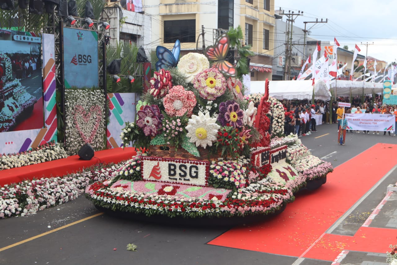 Terpantau, antusias masyarakat yang tampak terlihat begitu kagum menyaksikan penampilan setiap kendaraan maupun penampilan para talent menggunakan busana berhiaskan bunga.