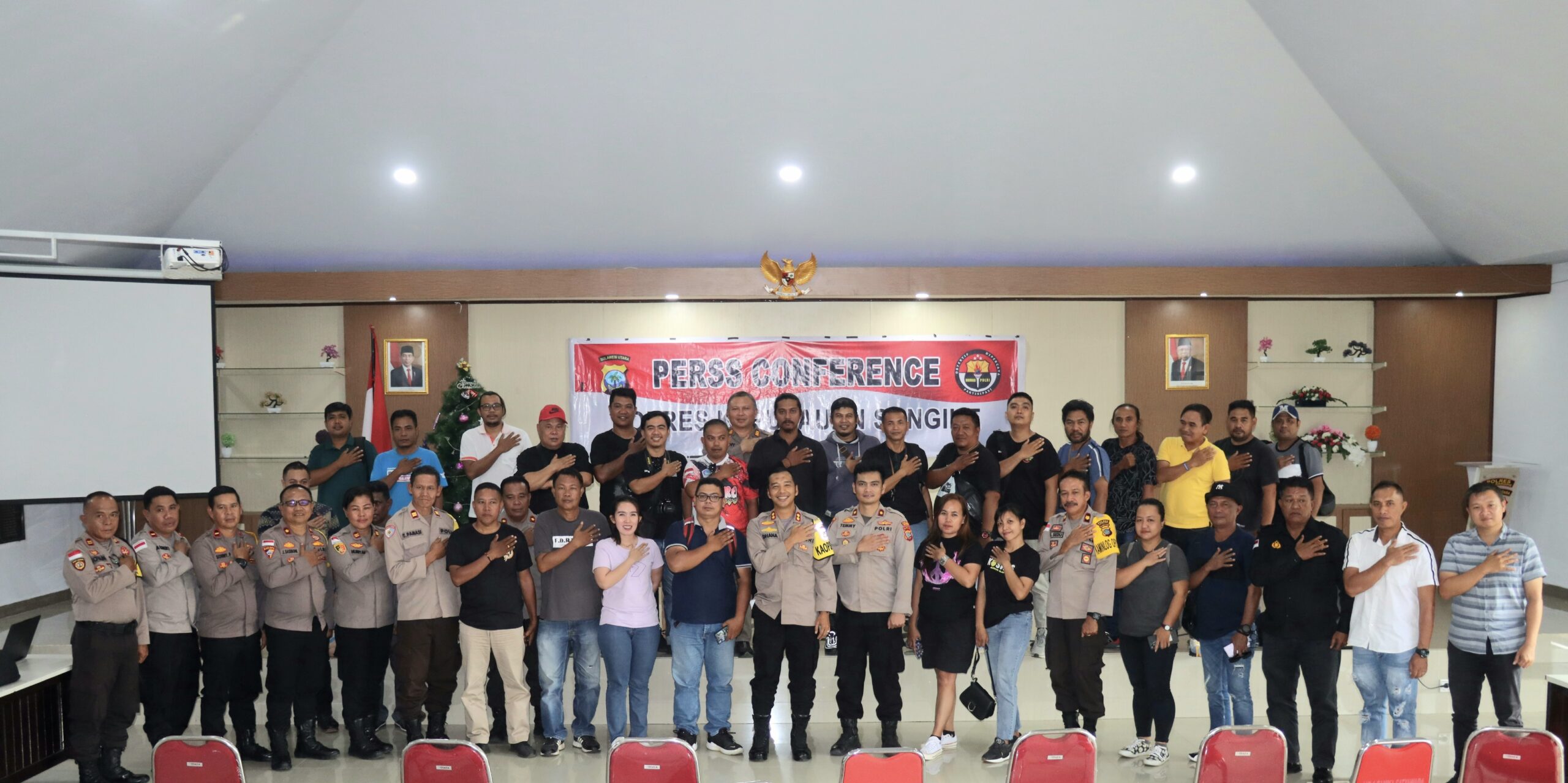 SANGIHE, GLOBAL BERITA— Mengakhiri tahun 2023 Kapolres Sangihe AKBP Dhana Ananda Syahputra, SH, S.IK, M.Si beserta jajaran menggelar Press Conference (Konferensi Pers), Jumat (30/12).