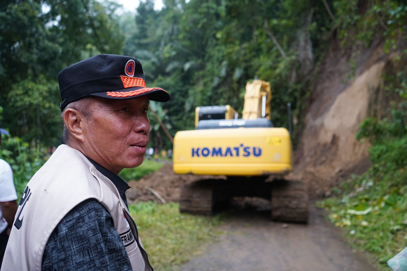 Bupati FDW dengan sigap segera memerintahkan instansi terkait menurunkan alat berat untuk mengatasi tanah longsor tersebut.