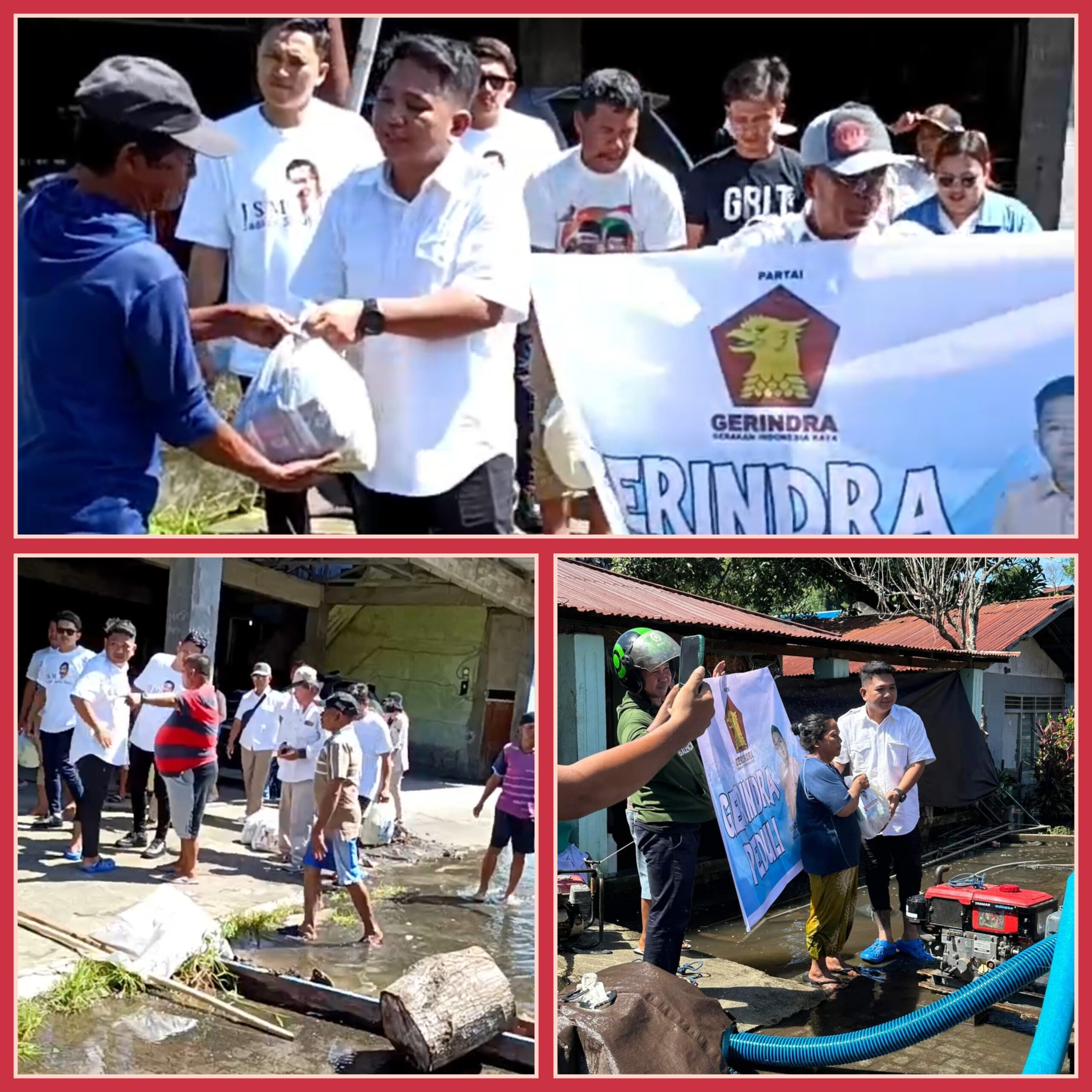 Saat dilokasi, Ketua DPC Gerindra Kota Bitung dan jajarannya serta rombongan langsung memberikan bantuan sosial kepada korban banjir bandang di Kelurahan Pateten Dua Kecamatan Aertembaga dan Kecamatan Lembeh utara Kelurahan Mawali, Selasa (09/04/2024)