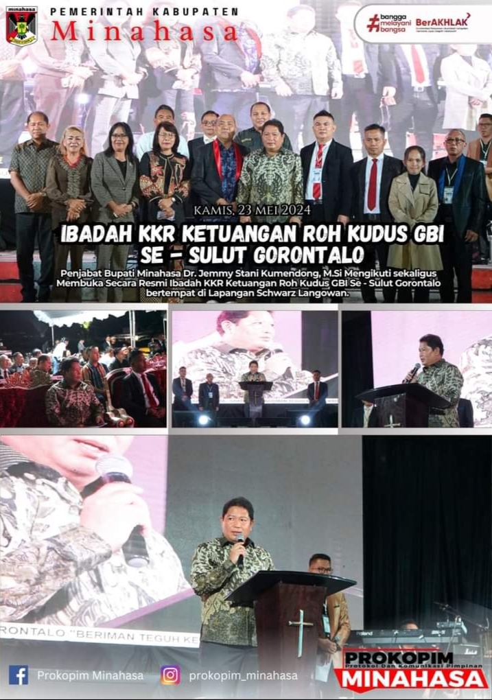 GLOBAL BERITA, MINAHASA – Pj Bupati Minahasa, Dr. Jemmy Stani Kumendong M.Si, menghadiri sekaligus membuka secara resmi Ibadah KKR Ketuangan Roh Kudus Gereja Bethel Indonesia (GBI) se Sulut-Gorontalo.
