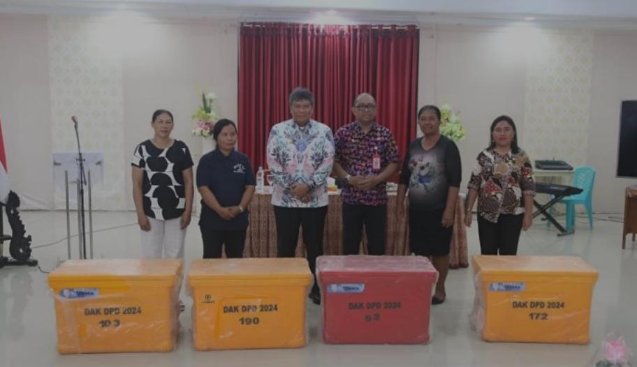 Sebanyak 332 unit cool box yang disumbangkan, penyerahan bantuan tersebut bertempat di ruang serbaguna rumah jabatan bupati sangihe.