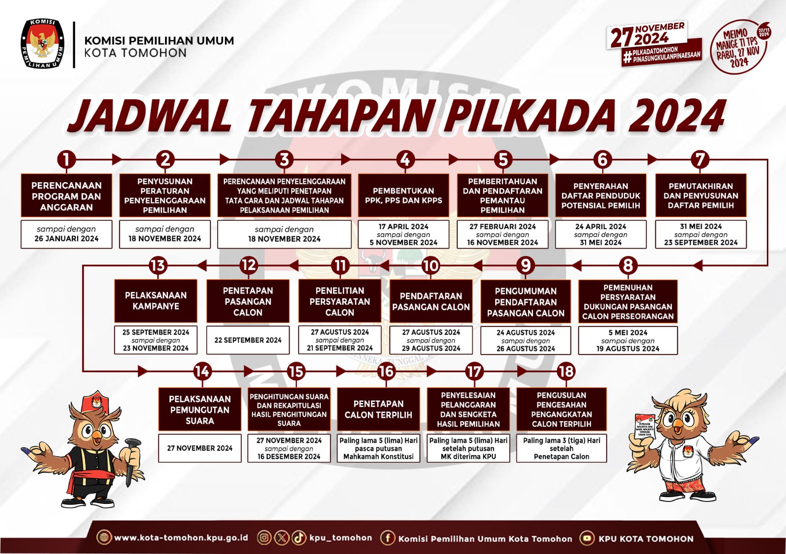 Komisi Pemilihan Umum Kota Tomohon Rilis Jadwal dan Tahapan Pilkada 2024adminAgustus 13, 2024Agustus 13, 2024TOMOHON1796 Dilihat Post Views: 1,796Posting TerkaitBerjalan Sukses dan Aman, Penggiat Pemilu Apresiasi Penyelenggara, TNI Polri dan Pemkot TomohonHari Ini, KPU Tomohon Rampungkan Pleno Hasil Suara Pemilu 2024Jangan LewatkanHanya Jadi ‘Hollywood’ Versi Tomohon, Landmark Tambulinas dari Dana PEN Tak Berdaya Sumbang PADUpaya Pemkot Tomohon Dongkrak Pertumbuhan Ekonomi Melalui Penguatan Sektor Ekonomi KreatifGedung Megah Puskesmas Kakaskasen Jadi “Pajangan”, Setahun Diresmikan Belum Ada PelayananViral Plat Nomor Kendaraan Dinas Tomohon Mati 2 Tahun, Warga: Penegak Aturan Jangan LalaiDr. Reinhard Tololiu Jabat Aspidum Kejati Sulut, Adi Imanuel Palebangan Nakhodai Kajari TomohonTomohon Jadi Percontohan, Walikota Caroll Senduk Teken Kerjasama Pengolahan Sampah Menjadi Energi Listrik