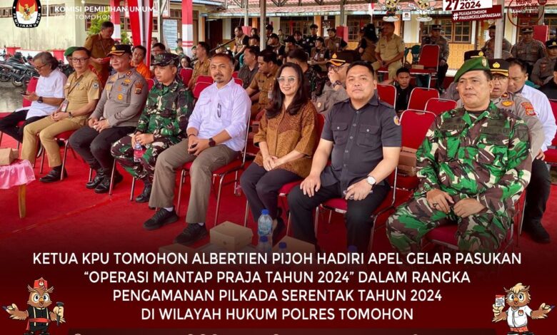 TOMOHON,GLOBAL BERITA — Ketua Komisi Pemilihan Umum ((KPU) Kota Tomohon Albertien G. V. Pijoh, menghadiri Apel Gelar Pasukan “Operasi Mantap Praja Tahun 2024”.