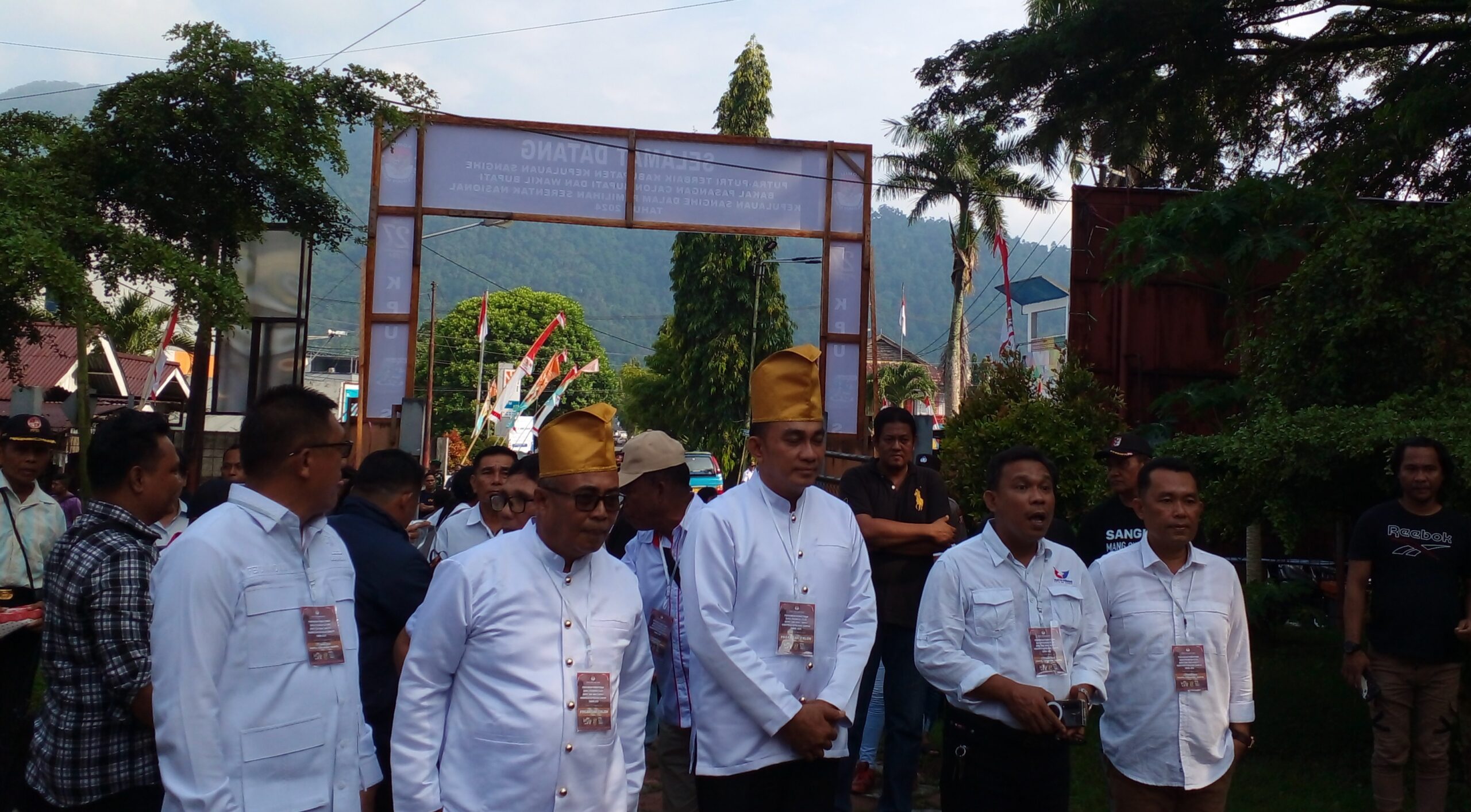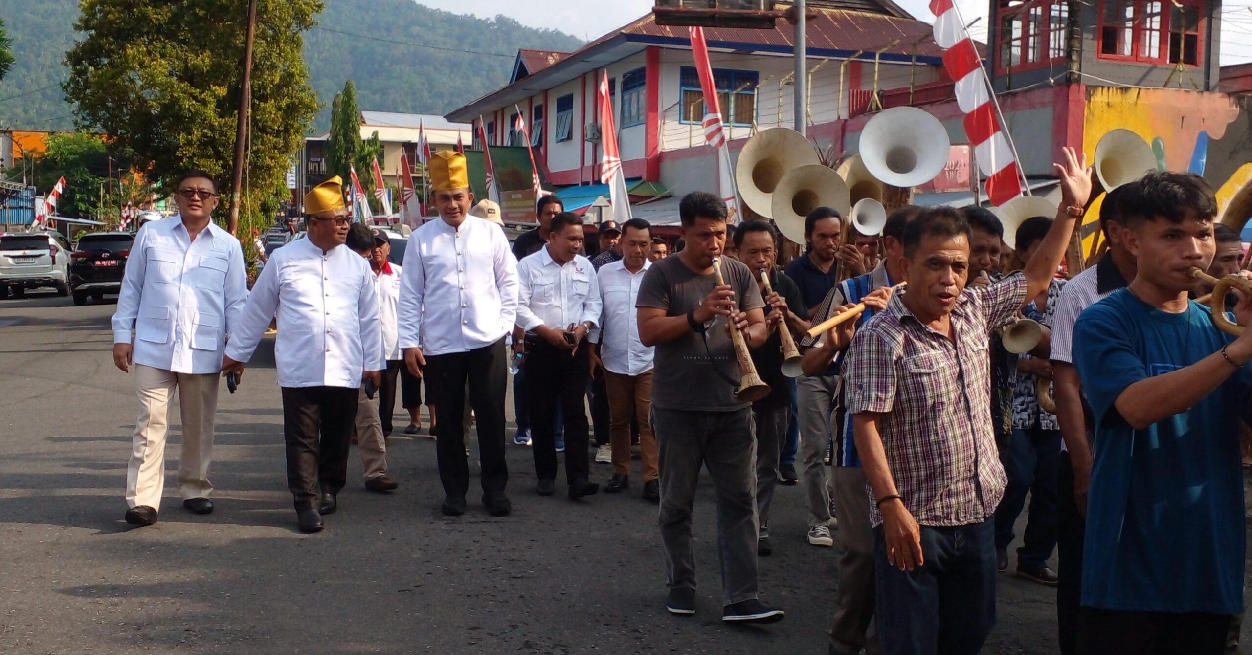 Mendatangi Gedung KPU Kabupaten Sangihe, Pasangan Manossoh – Sinadia yang disingkat Menadia didampingi oleh masa pendukung serta pengurus- pengurus partai dari kedua pihak Partai Gerakan Indonesia Raya (Gerindra) dan Partai Persatuan Indonesia (Perindo), juga diiringi alunan musik bambu yang membuat suasana pendaftaran sore tadi menjadi khidmat.