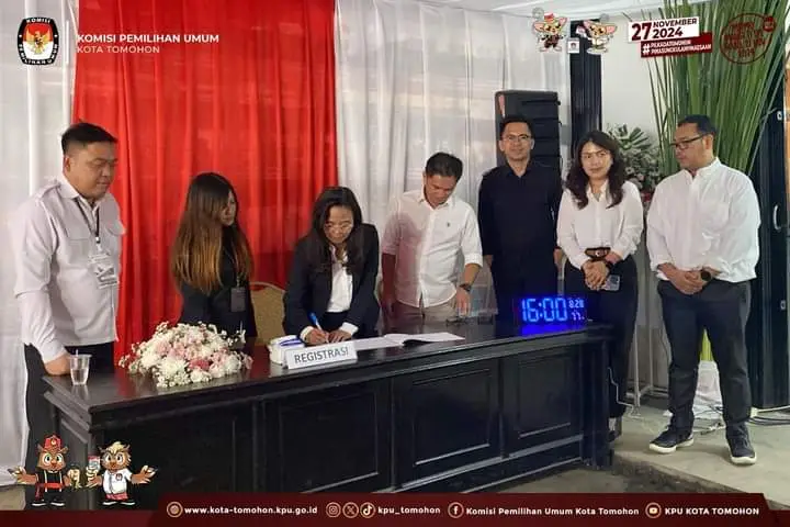 Penutupan registrasi ini dilakukan oleh Ketua KPU Kota Tomohon Albertien G.V. Pijoh, bersama Anggota KPU Deisy T. Soputan, Arinny Y. Poli, Rojer R. Datu dan Youne YP. Simangunsong, serta disaksikan oleh Bawaslu Kota Tomohon.