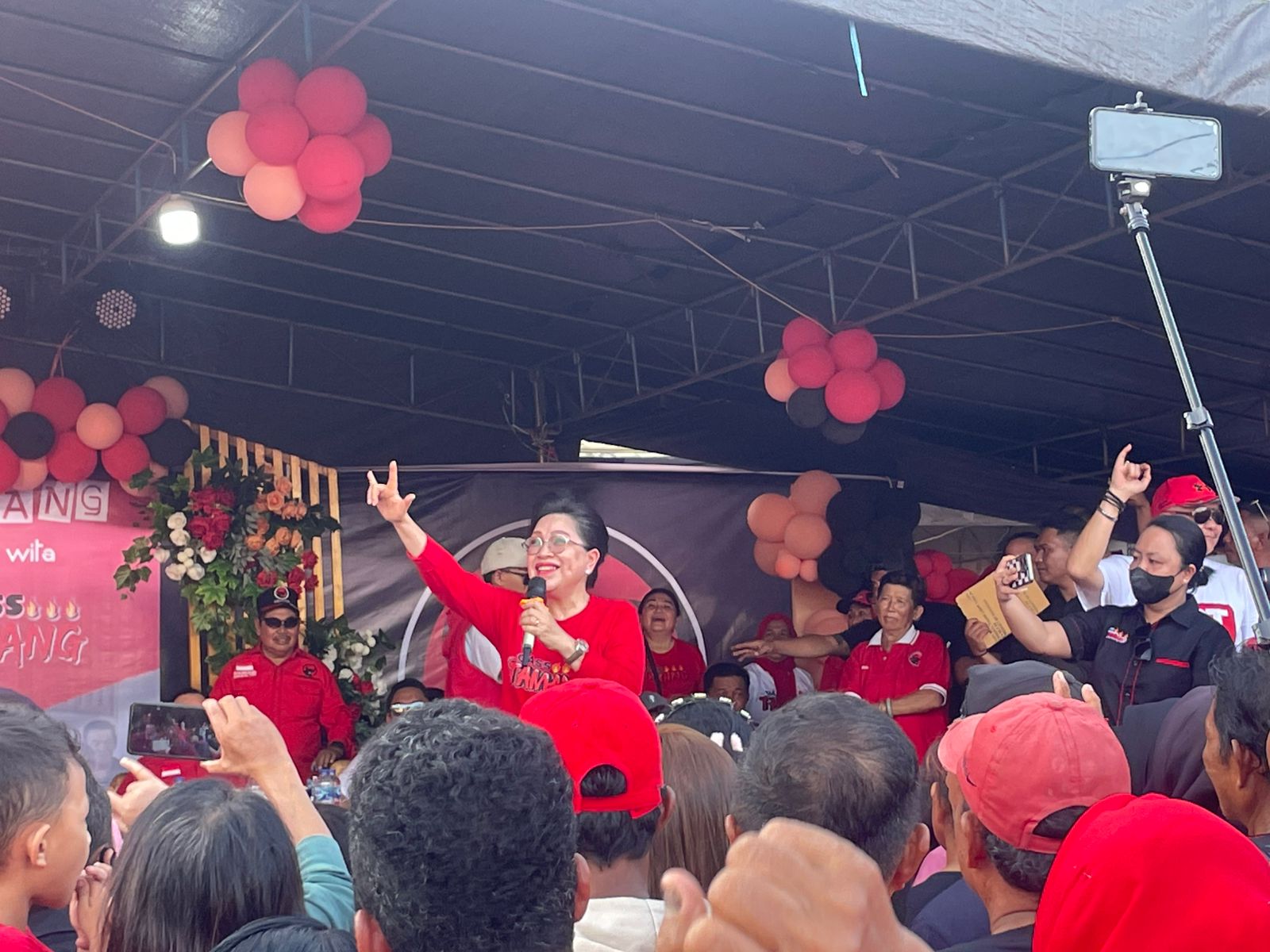 “Saya bukan lagi berjanji tapi sudah berbuat bagi warga Sangihe. Dua tahun Penjabat Bupati Sangihe telah bekerja dengan baik. Dan banyak yang sudah dilakukan. Infrastrutur jalan diperbaiki, talud yang sering kena hantaman ombak juga dibuat sehingga warga aman. Maka jangan ragu-ragu pilih kami untuk melanjutkan program dan pembangunan untuk Sangihe yang lebih baik,” ujar istri tercinta dr Fransiskus Andi Silangen saat orasi.