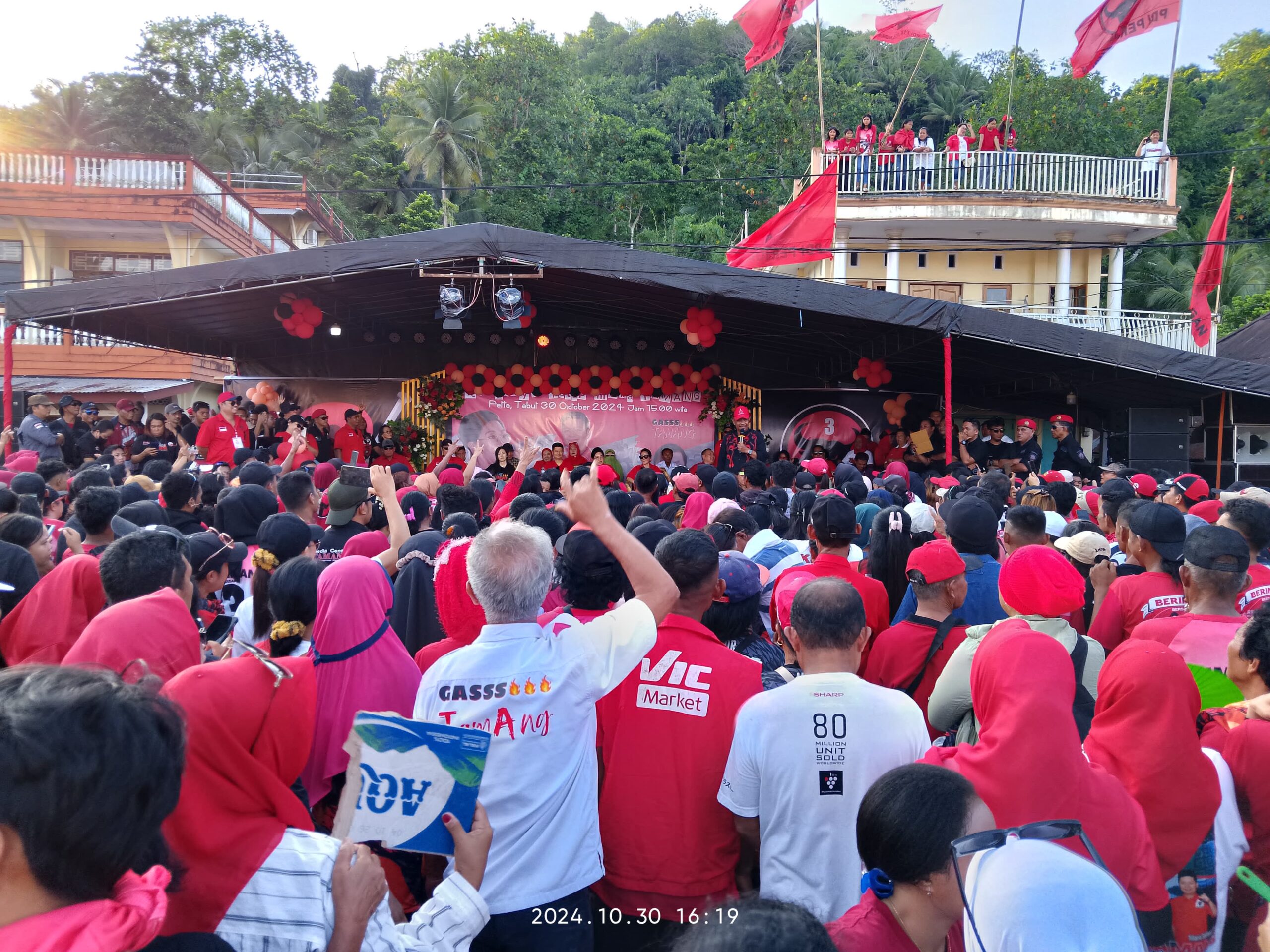 SANGIHE, GLOBALBERITA – Di hadapan masyarakat yang hadir di Kampung Petta, Kecamatan Tabukan Utara, Rabu (30/10/2024), calon Wakil Bupati PDI Perjuangan, Mario Seliang SE, tampil penuh semangat pada kampanye terbuka bersama Calon Bupati dr Rinny Tamuntuan.