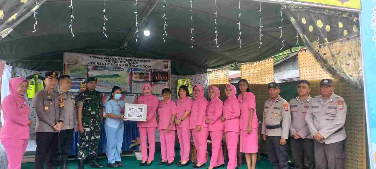 Bolaang mongondow melaksanakan kunjungan di Pos Pam Natal Wilayah hukum Polres Bolmong, kegiatan ini di lakukan oleh Ketua Bayangkari Cabang Polres Bolmong NY.Putri Chaidir bersama dengan ibu-ibu Bhayangkari Polres Bolmong.