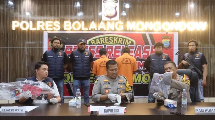 Insiden ini terjadi di wilayah hukum Polres Bolmong dan menimbulkan keresahan di kalangan masyarakat. Dalam press conference yang digelar di Mapolres Bolmong, AKBP LIDO R. ANTORO menyampaikan bahwa, pihaknya telah menangkap 2 (dua) tersangka yang terlibat dalam kasus tersebut,”Tutur Kapolres.