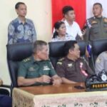 yang mewakili Danyon Brimob Pelopor Inuai Danki 1 AKP ACUK JAINURIN Serta, DanPos-AL LETDA LAUT PM WIJANARKO , yang mewakili Dandim 1303 Bolmong pabung MAYOR. CKE MUSTAFA UMBOH, bersama Asisten III Bidang Administrasi Umum Sekertaris Daerah Ibu Dr. HC RAMLAH MOKODONGAN, S.E., M.Si, bersama