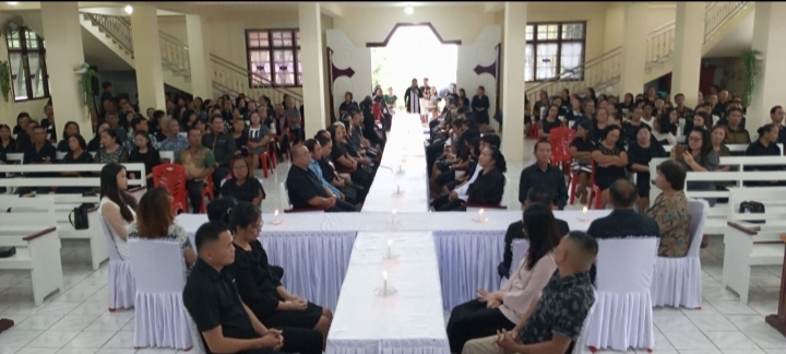 Pada perayaan Jumat Agung, Bupati Minahasa Tenggara Ronald Kandoli didampingi istri sekaligus Ketua TP-PKK Kabupaten Mitra Ny Stefa Kandoli-Antou bersama Keluarga besar Kandoli-Rantung Kandoli-Antou, Kandoli Kalangi dan Kandoli-Lewan mengikuti Ibadah Jumat Agung dirangkaikan dengan Sakramen Perjamuan Kudus, di Gereja GMIM Anugerah Lowu Satu, Wilayah Ratahan, Jumat (18/4/2025). (Advetorial)