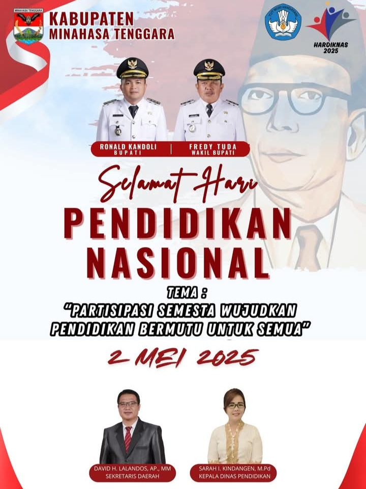 Mitra,Globalberita.com-Kepala Dinas pendidikan ( Disdik) kabupaten Minahasa tenggara (Mitra) Sarah Kindangen,S.pd,Mpd beserta Jajaran, Mengucapkan Selamat Memperingati Hari Pendidikan Nasional (Hardiknas) 2 Mei 2025.