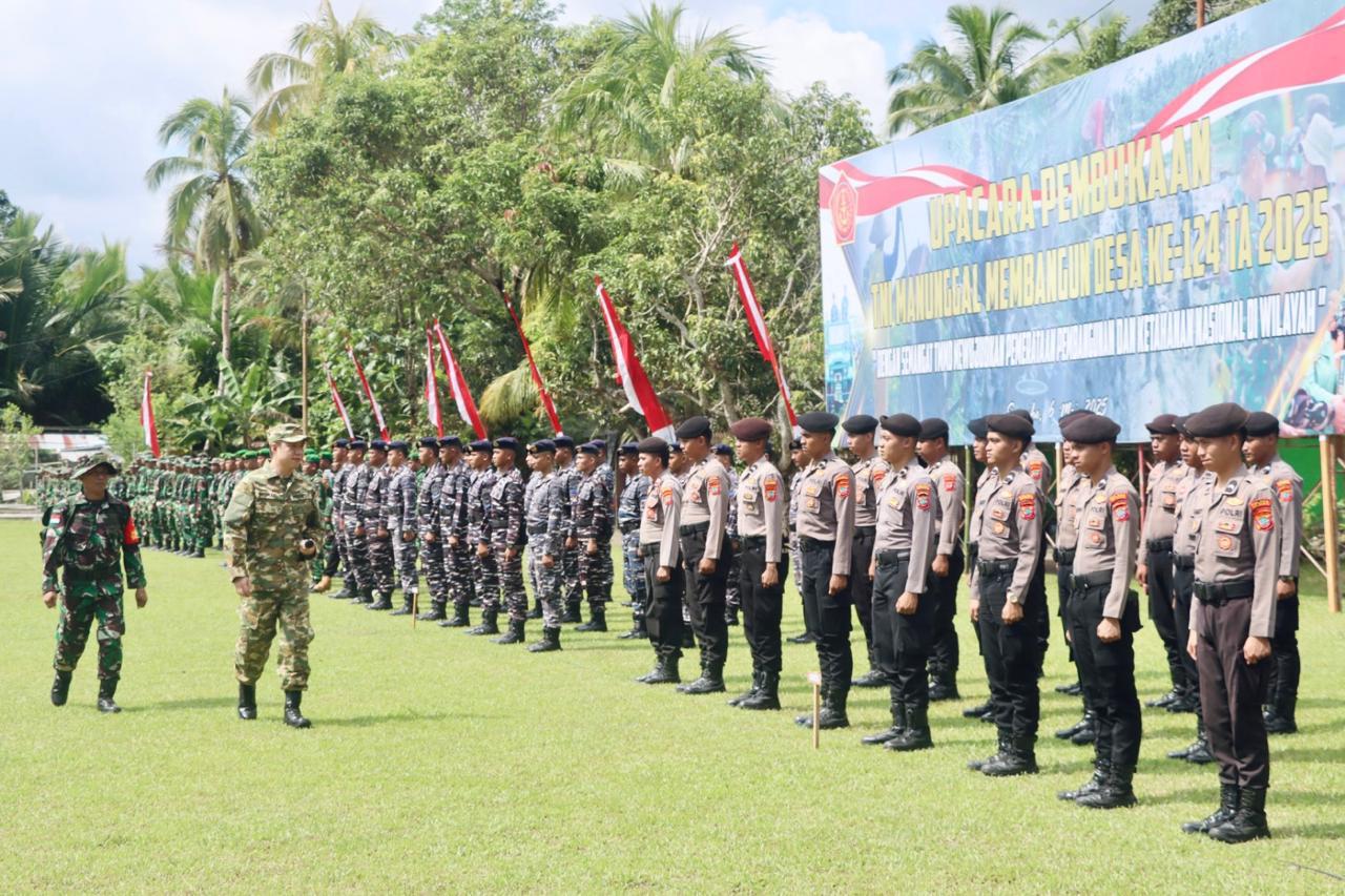 Berlokasi di Lapangan Kampung Naha, Kecamatan Tabukan Utara, TMMD ke 124 tahun 2025 mengusung Tema ” Dengan Semangat TMMD Mewujudkan Pemerataan Pembangunan dan Ketahanan Nasional di Wilayah.”