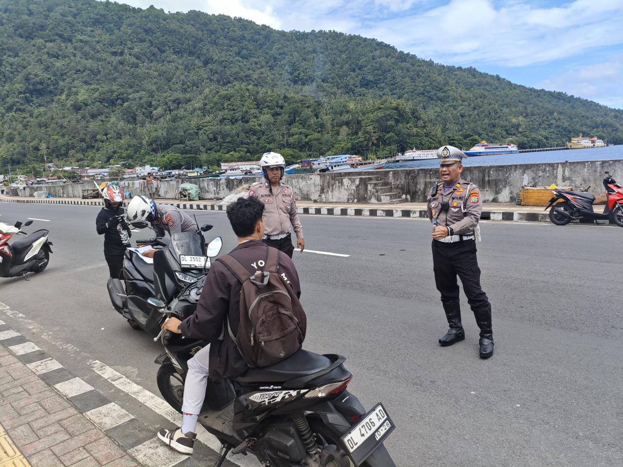 “Kegiatan ini rutin kami lakukan untuk menciptakan suasana lalu lintas yang tertib, aman, dan nyaman bagi masyarakat,” ujar IPTU Ismail Diko.