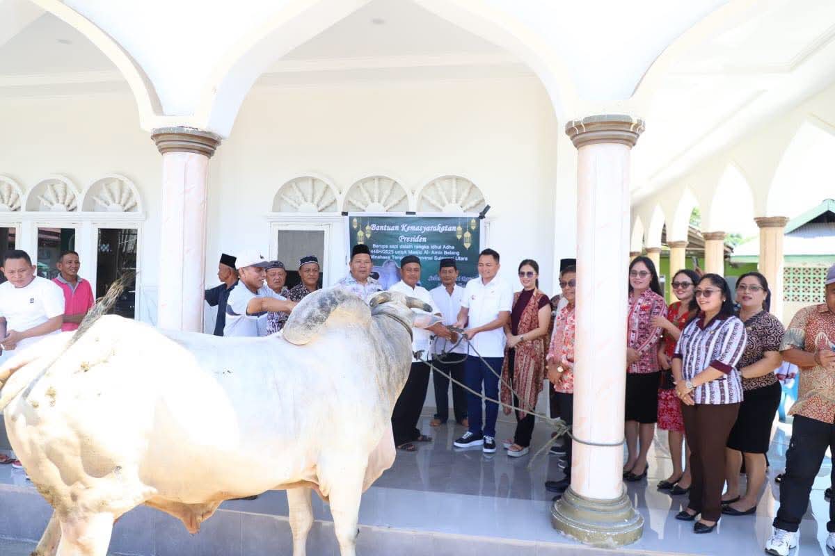 Adapun hewan kurban diberikan pertama, dari Presiden RI Prabowo Subianto sebanyak 1 ekor sapi yang diterima pada jemaah Al Amin Belang, selanjutnya sebanyak 6 ekor hewan kurban sapi diberikan kepada jemaah Masjid Nurul Hasanah Ratahan.