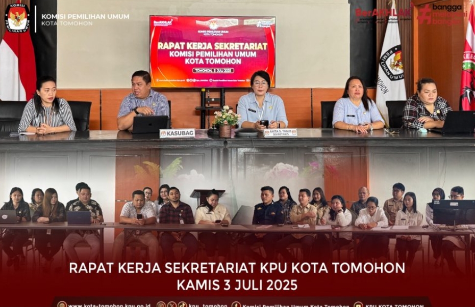Global Berita, Tomohon, 3 Juli 2024 – Sekretariat KPU Kota Tomohon mengadakan Rapat Kerja di Aula Kantor KPU Kota Tomohon. Rapat ini dipimpin oleh Sekretaris KPU Kota Tomohon, Anita Sofya Tampi, dan dihadiri oleh seluruh jajaran Sekretariat KPU Kota Tomohon.