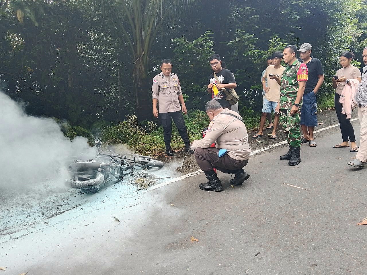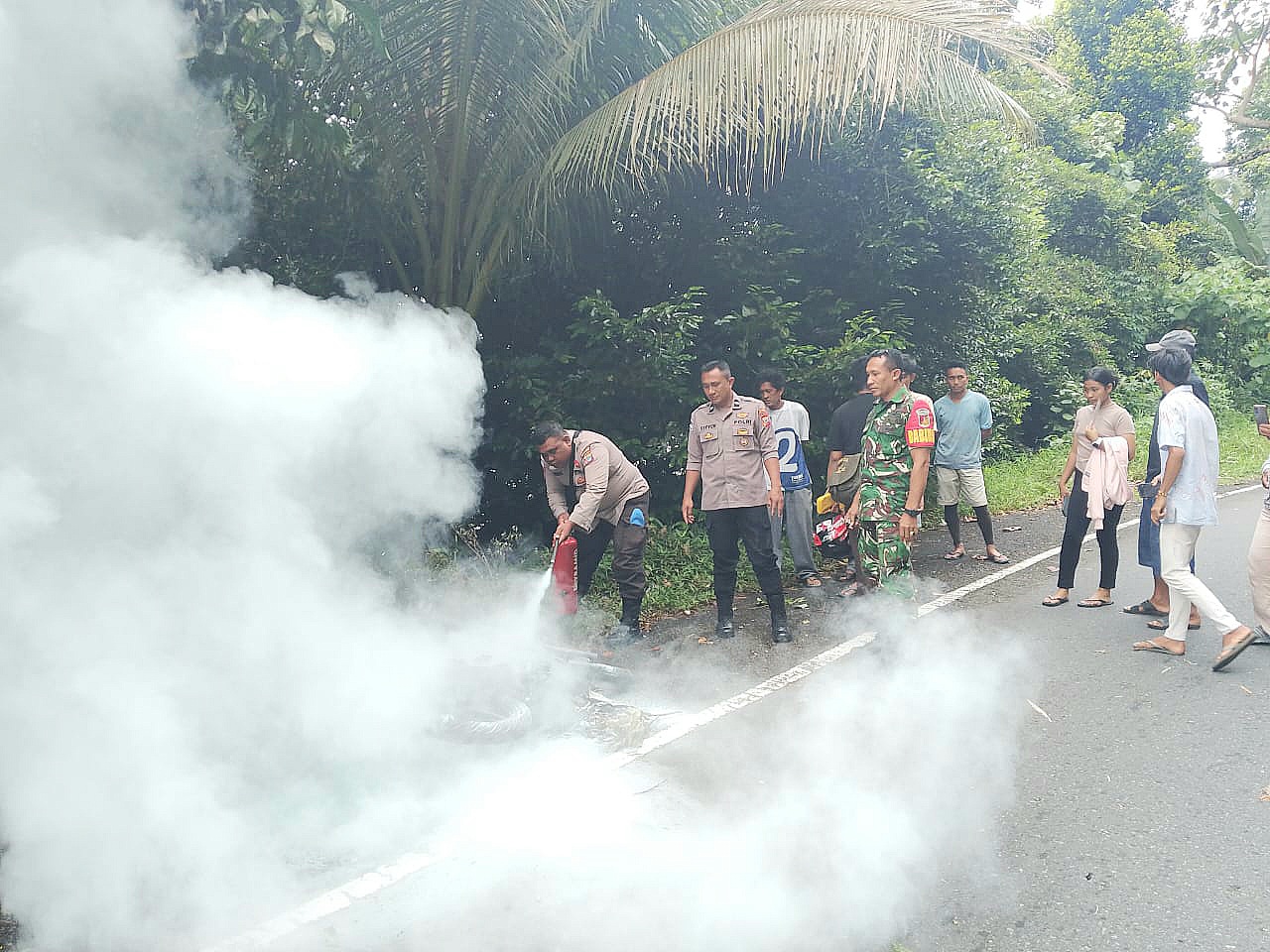 Meski sempat dilakukan upaya pemadaman, motor tersebut hangus terbakar hingga hanya menyisakan rangka besi. Beruntung tidak ada korban jiwa dalam insiden ini, namun kerugian materiil diperkirakan mencapai Rp 7 juta.