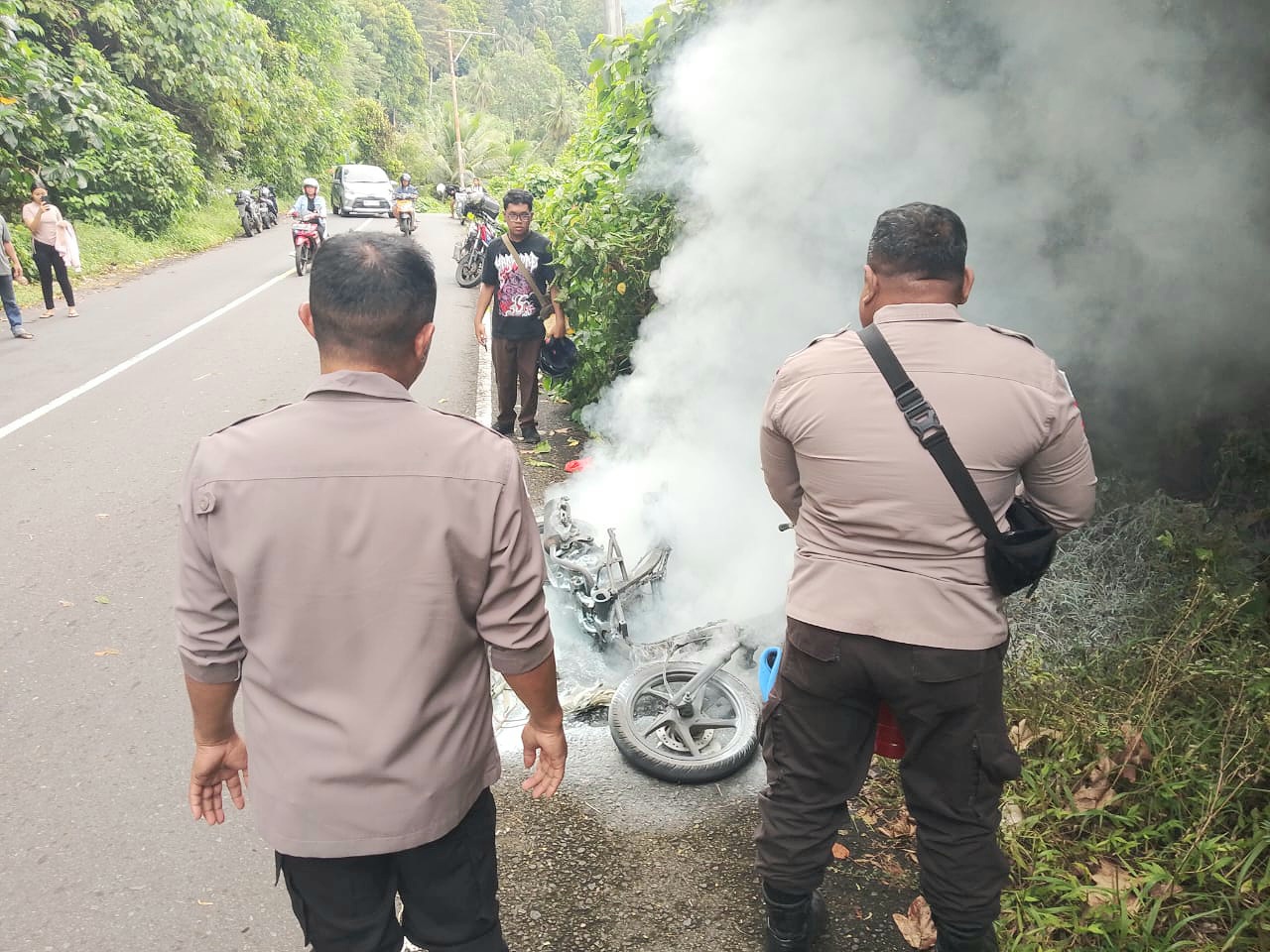SANGIHE, GLOBALBERITA — Satu unit kendaraan bermotor (ranmor) roda dua dilaporkan terbakar di jalan raya arah Manganitu – Tahuna, Rabu (9/7/2025).