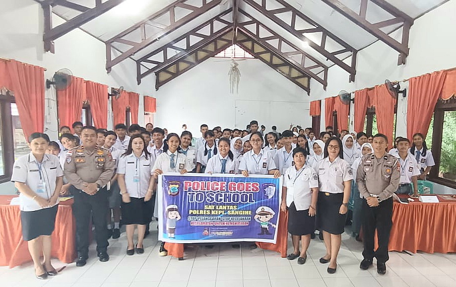 SANGIHE, GLOBALBERITA– Satuan Lalu Lintas (Satlantas) Polres kepulauan sangihe terus menggalakkan edukasi keselamatan berkendara kepada pelajar melalui program “Police Goes to School“, Rabu (9/7/2025).