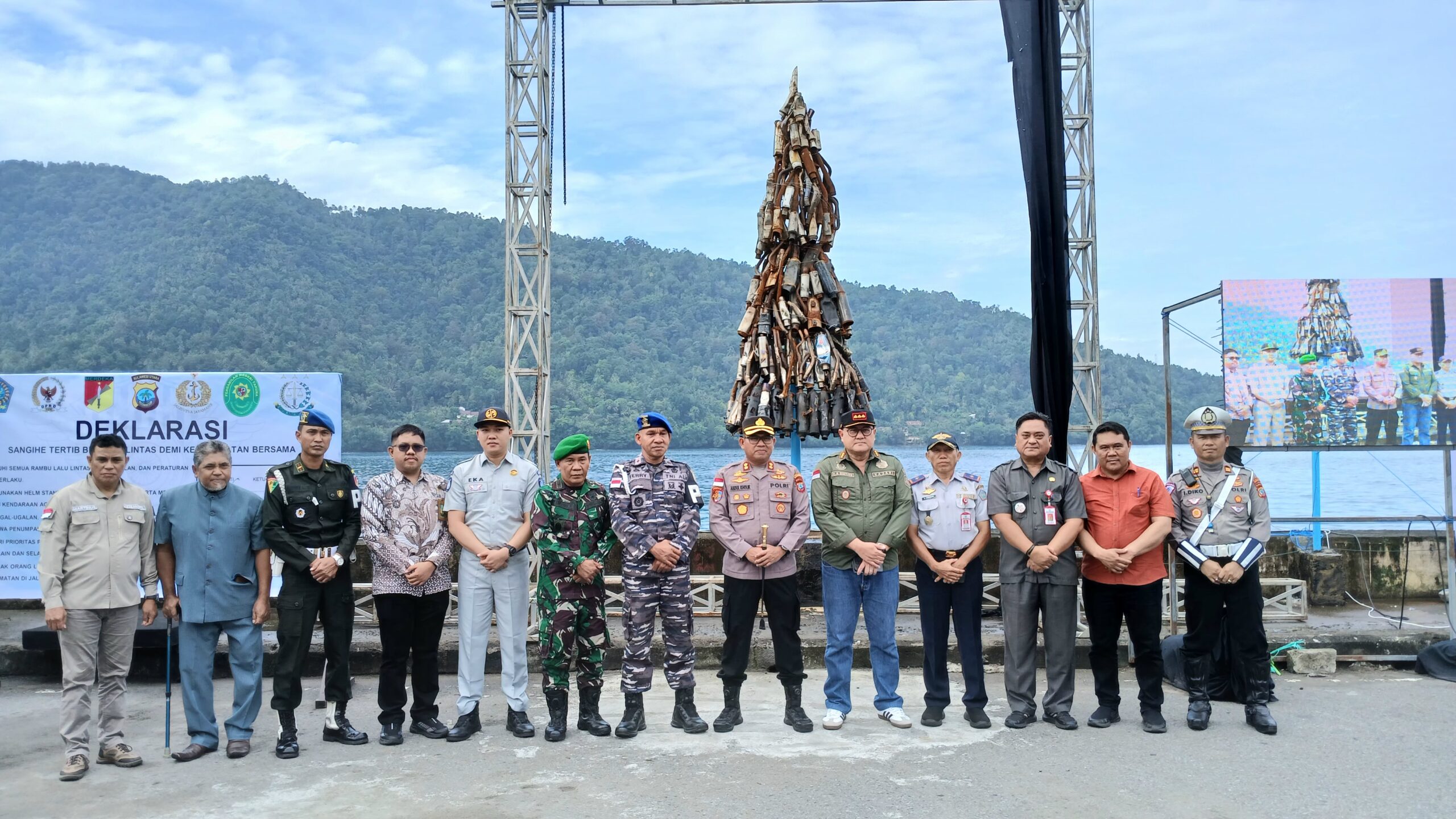 SANGIHE, GLOBALBERITA — Upaya meningkatkan kesadaran masyarakat akan pentingnya keselamatan di jalan raya, Polres Kepulauan Sangihe menggelar Deklarasi “Sangihe Tertib Berlalu Lintas” sekaligus meresmikan monumen pohon knalpot brong, Jumat (19/7/2025).