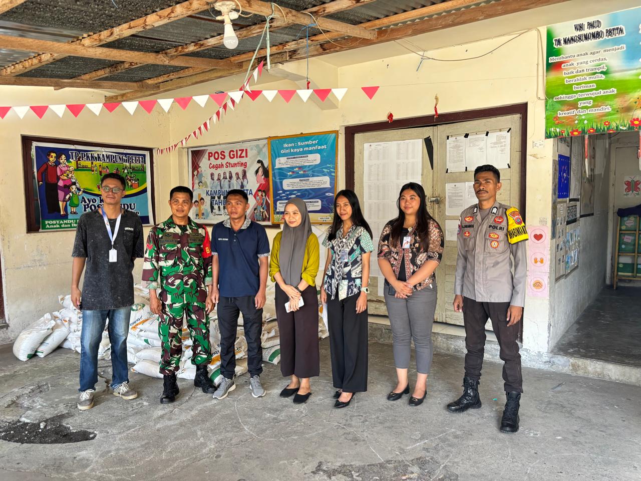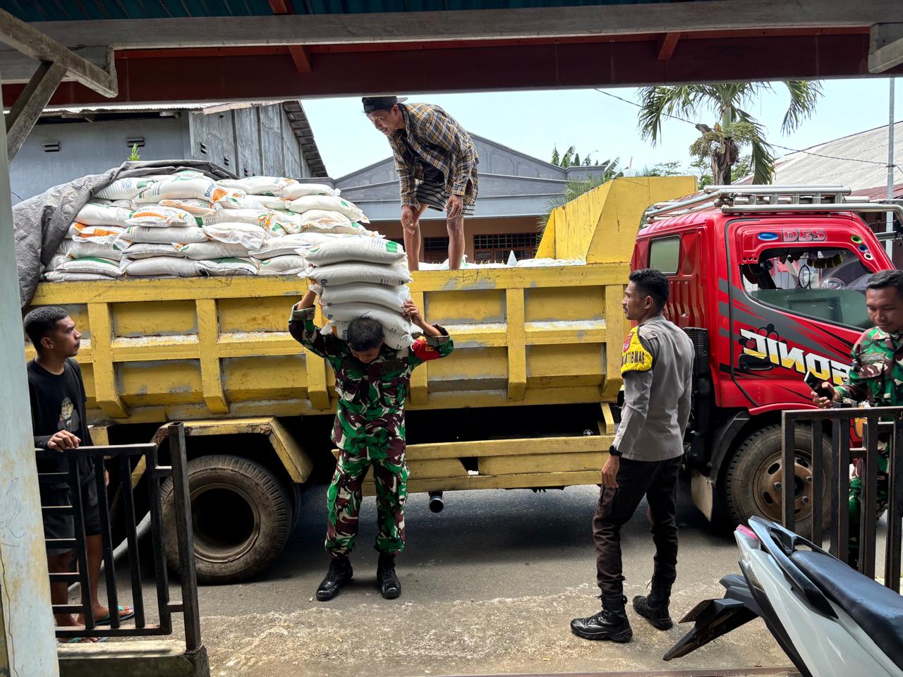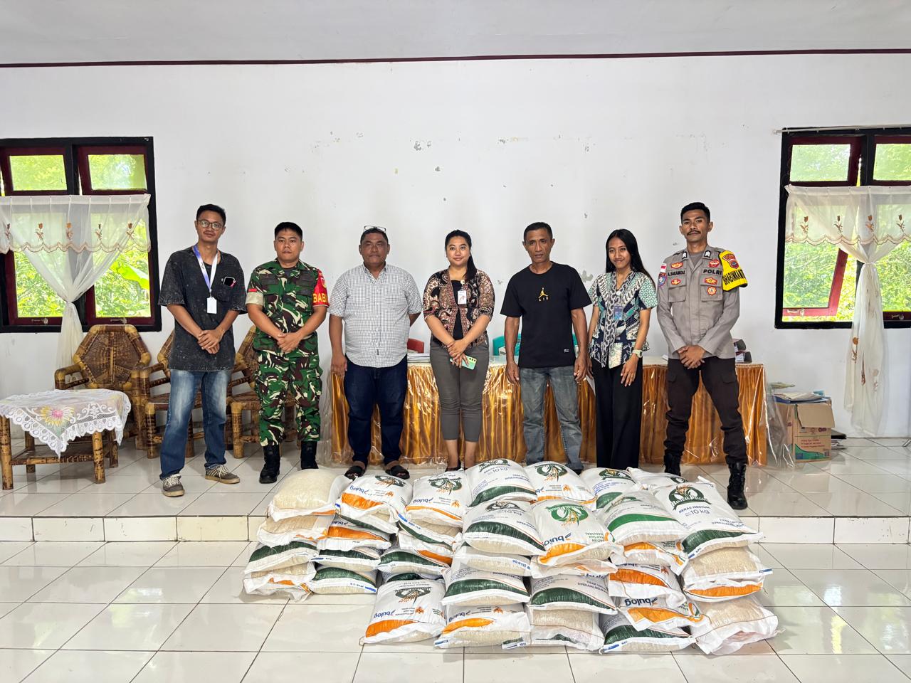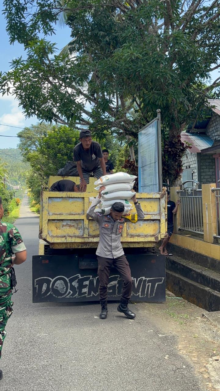 Setibanya di lokasi, pengamanan dilanjutkan oleh Bhabinkamtibmas Polsek Tabukan Utara dan personel Babinsa setempat yang bersinergi dalam mendistribusikan beras ke masyarakat.