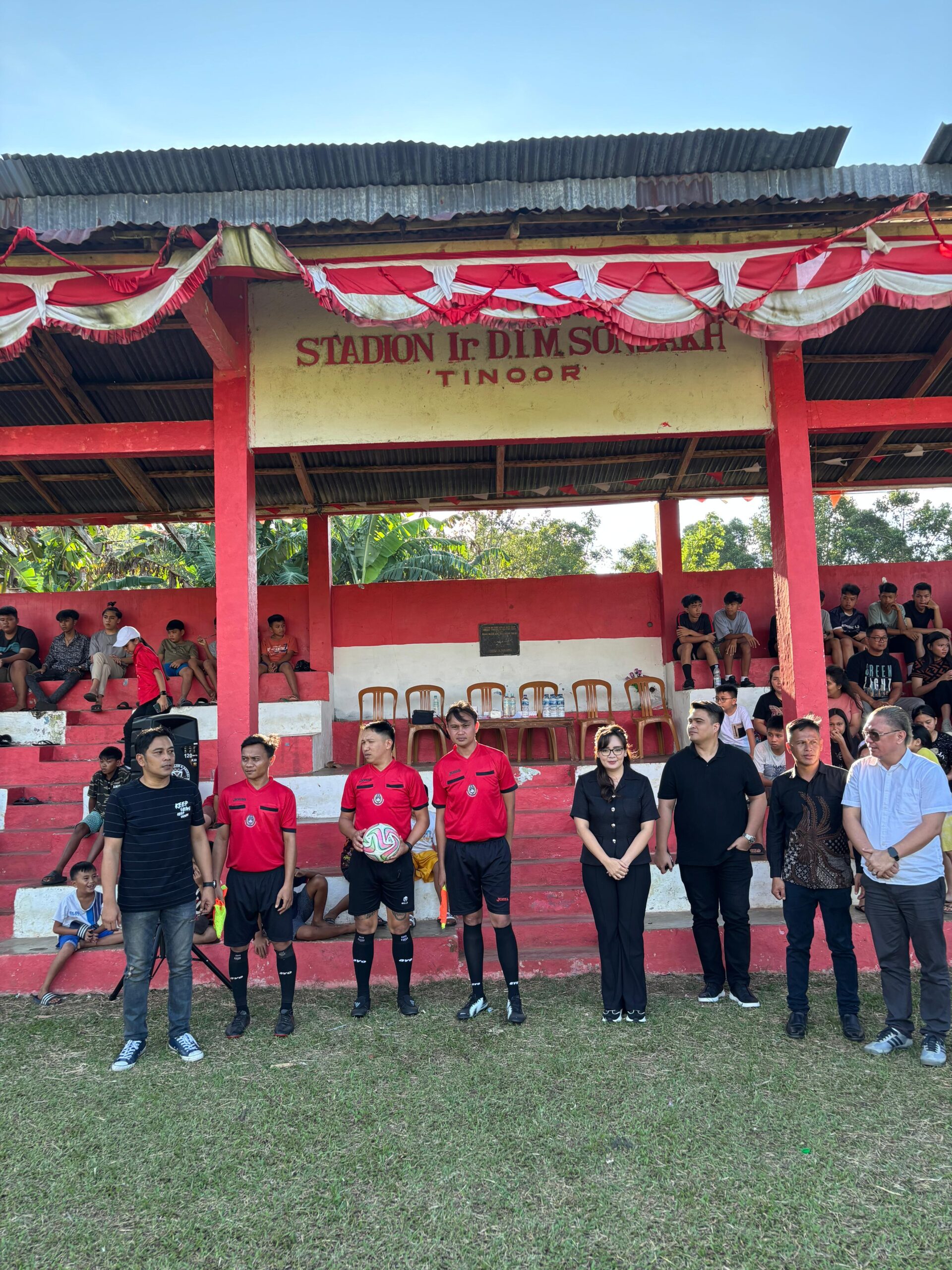 Tinoor, Global Berita – Wakil Wali Kota Tomohon, Sendy G. A. Rumajar, S.E., M.I.Kom., didampingi suami Ariel Warouw, S.H., menghadiri kegiatan Pembukaan Turnamen Sepak Bola Kelurahan Tinoor Raya dalam rangka memperingati Hari Ulang Tahun ke-80 Republik Indonesia. Kegiatan ini dilaksanakan pada Minggu, 27 Juli 2025, bertempat di Lapangan Ir. D. I. M. Sondakh, Tinoor.