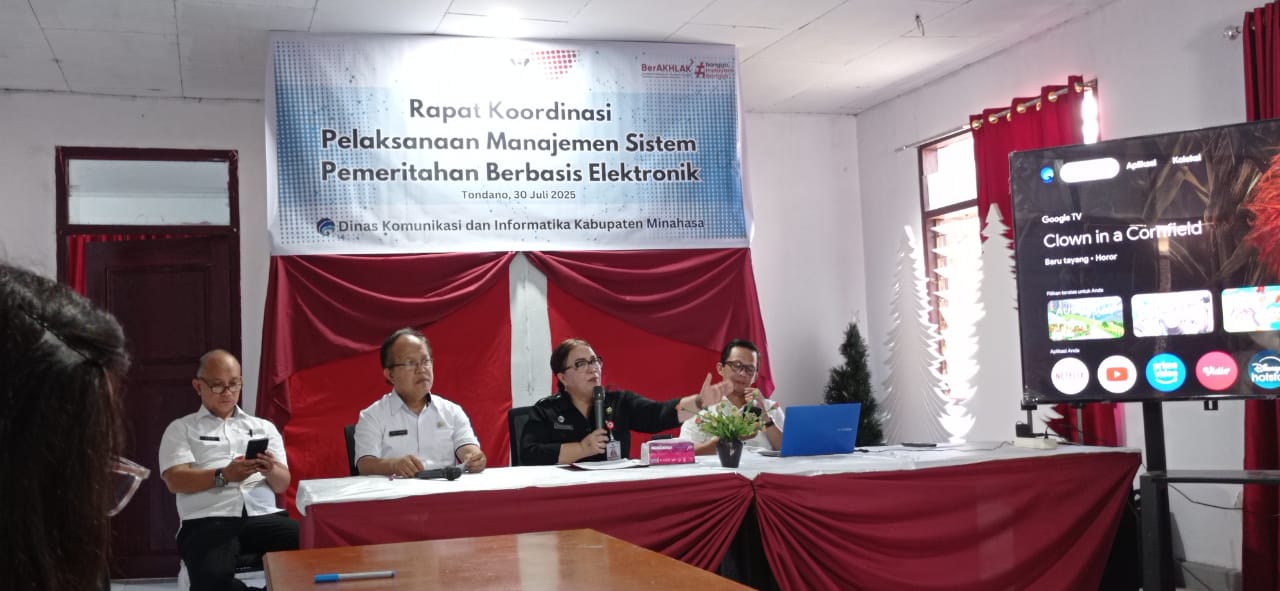 Global Berita, Tomohon — Dinas Komunikasi dan Informatika (Diskominfo) Kabupaten Minahasa menggelar Rapat Koordinasi Pelaksanaan Manajemen Sistem Pemerintahan Berbasis Elektronik (SPBE) pada Rabu, 30 Juli 2025, di Kantor Diskominfo Kabupaten Minahasa. Gogen Ngantung dari Dinas Kominfo Tomohon menjadi narasumber dalam rapat ini.