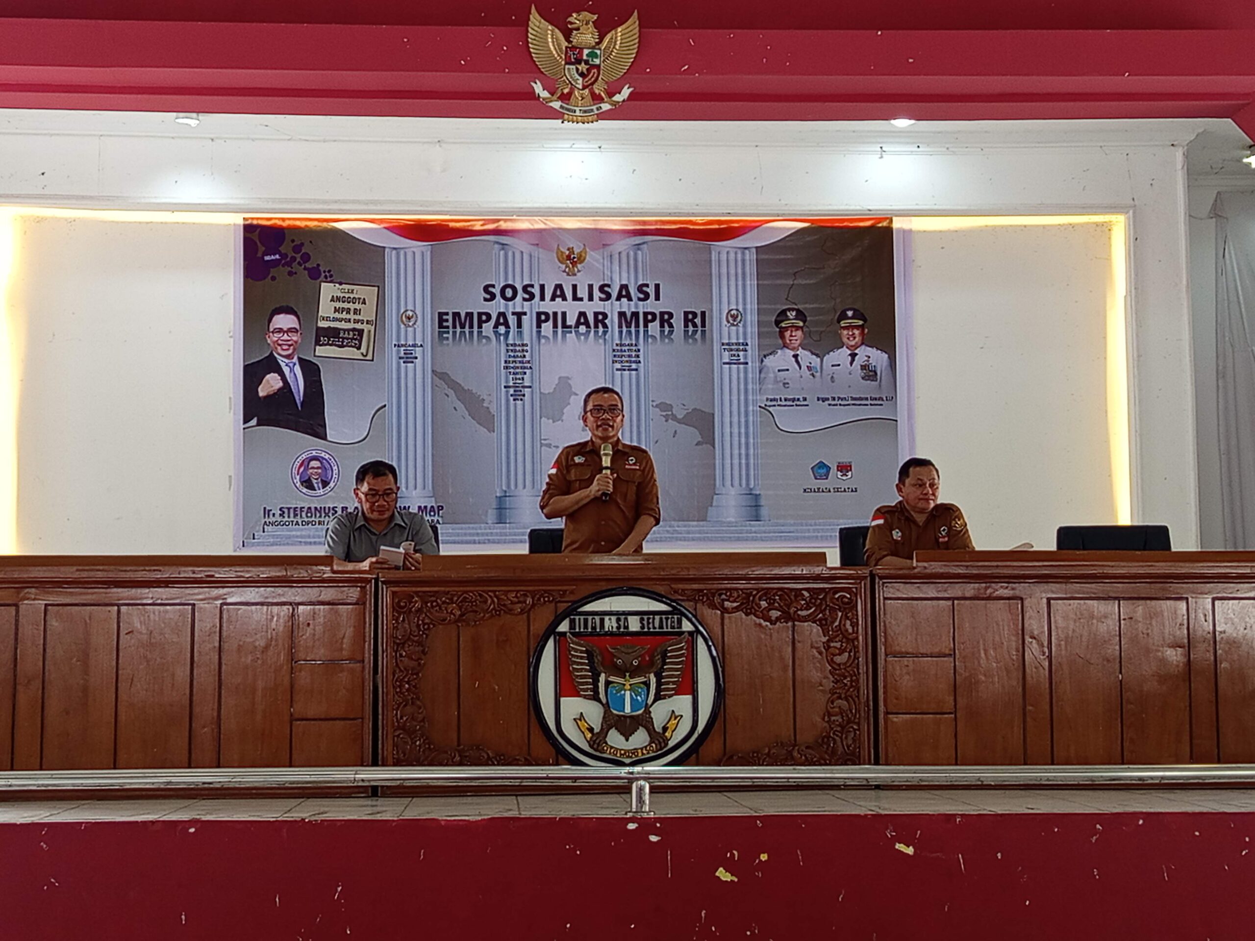 MINSEL, GLOBALBERITA – Anggota Dewan Perwakilan Daerah (DPD) RI Perwakilan Sulawesi Utara Stefanus BAN Liow menggelar Sosialisasi Empat Pilar MPR RI di Aula Waleta Kantor Bupati Minahasa Selatan, Rabu (30/7).