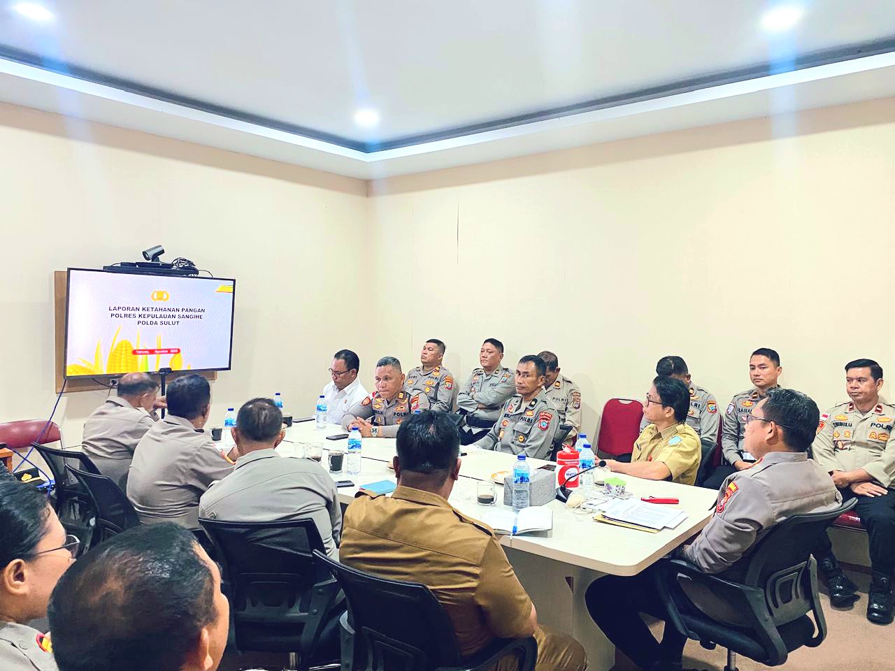 Kegiatan tersebut diikuti langsung oleh Kapolres Kepulauan Sangihe, AKBP Abdul Kholik, S.H., S.I.K., M.A.P, bersama para Pejabat Utama (PJU) Polres, para Kapolsek jajaran, serta instansi terkait. Anev daring ini merupakan bagian dari program Polri dalam mendukung ketahanan pangan nasional melalui pemanfaatan lahan potensial di berbagai wilayah, termasuk di Kepulauan Sangihe.