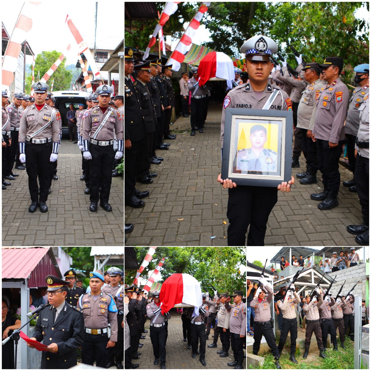 Upacara penghormatan terakhir diberikan oleh anggota Satlantas Polres Tomohon melalui tradisi salvo, mengiringi jenazah Bripka Riffo ke tempat peristirahatan terakhir. Tembakan salvo yang menggema menjadi ungkapan penghormatan tertinggi atas jasa dan pengabdian almarhum selama bertugas di kepolisian.