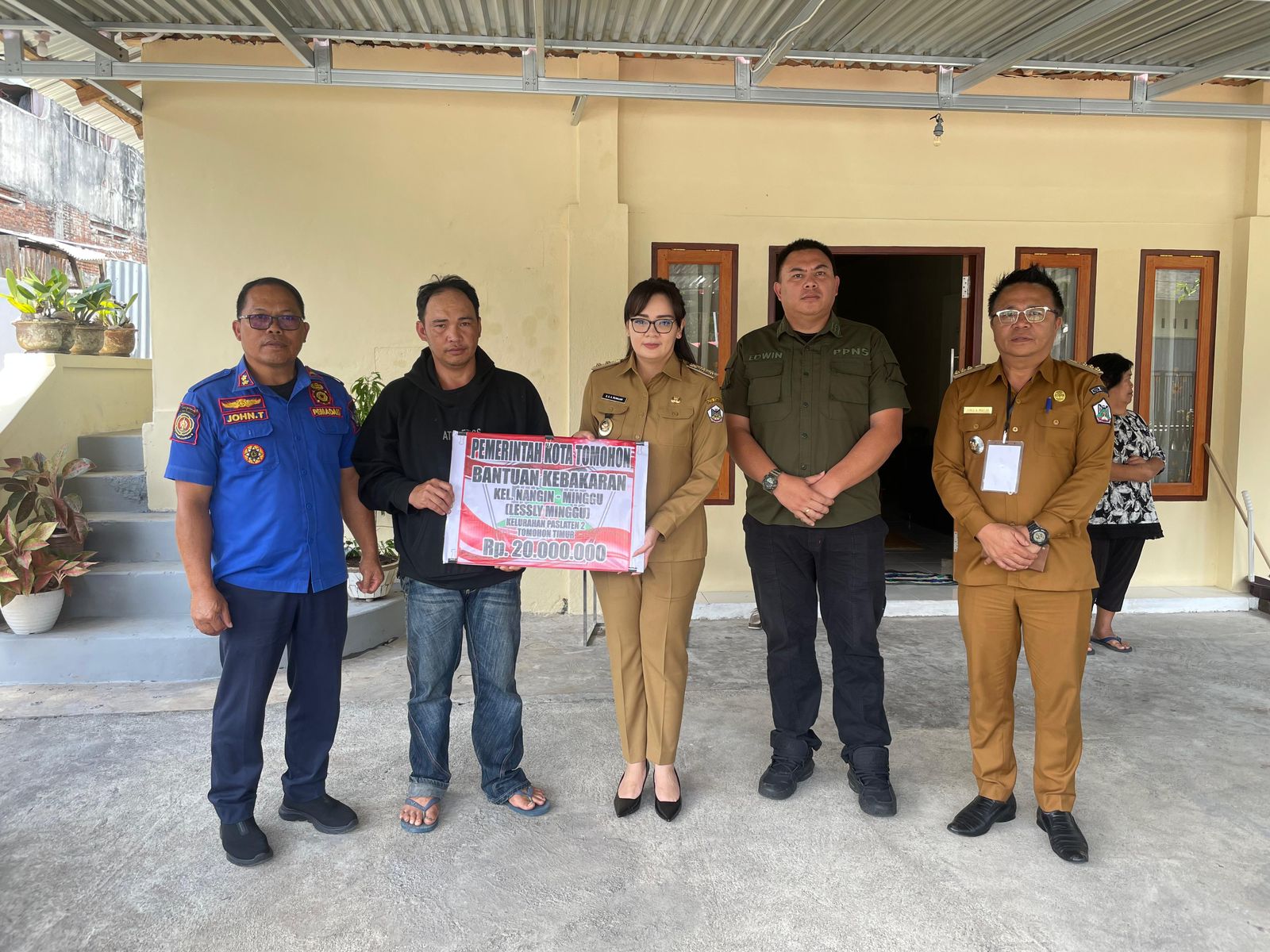 Bantuan tersebut diserahkan langsung oleh Wakil Wali Kota Tomohon, Sendy G.A. Rumajar, kepada dua keluarga penerima, yaitu keluarga Nangin-Minggu dan keluarga Pijoh-Rondonuwu. Setiap keluarga menerima bantuan sebesar Rp20.000.000.