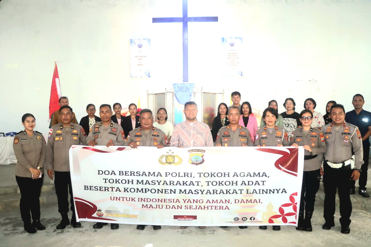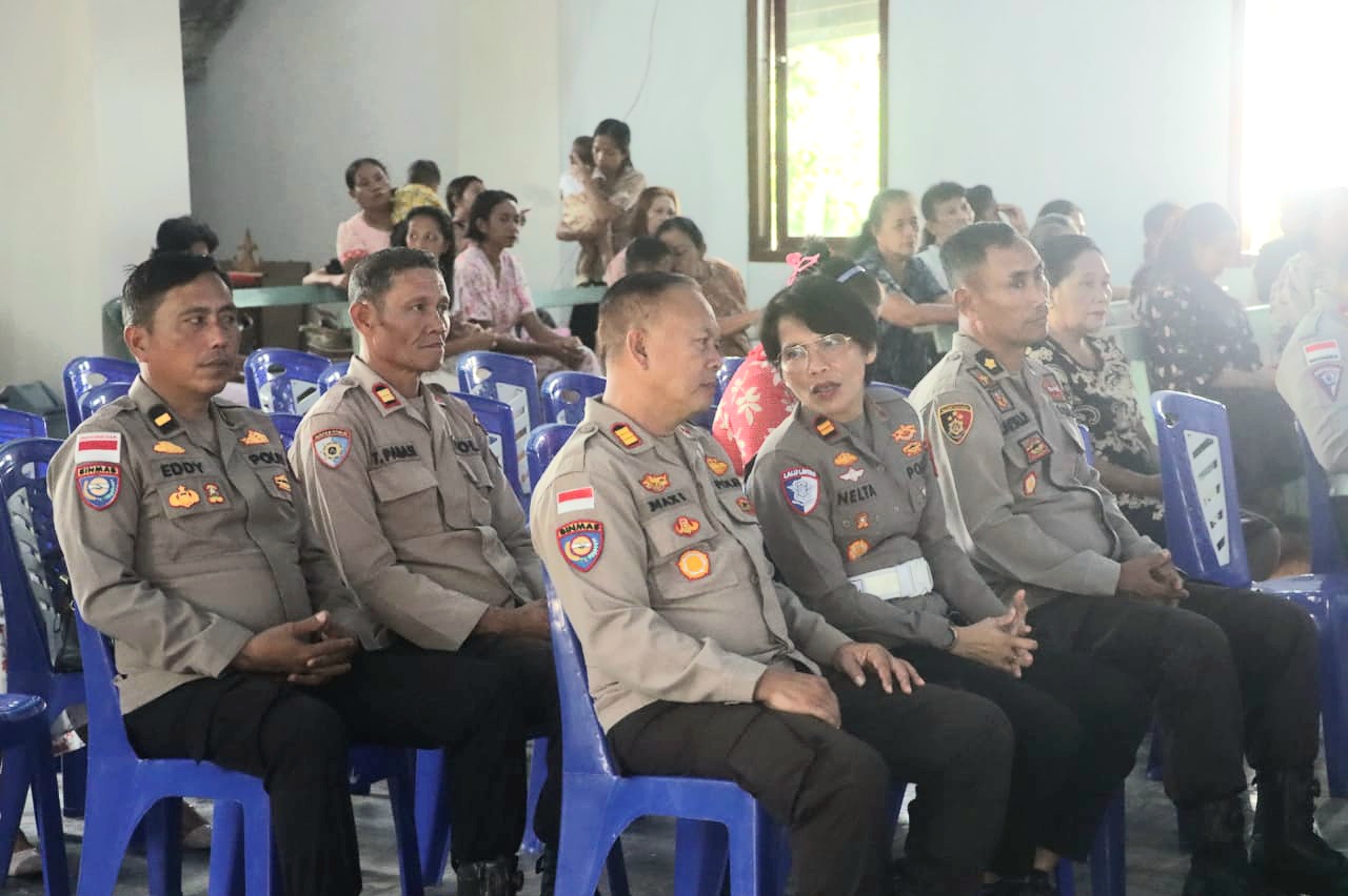 SANGIHE, GLOBALBERITA– Polres Kepulauan Sangihe melaksanakan Program Minggu Kasih di Jemaat Gmist Bukit Zaitun, Kampung Tola, Kecamatan Tabukan Utara, Minggu (31/8/2025).