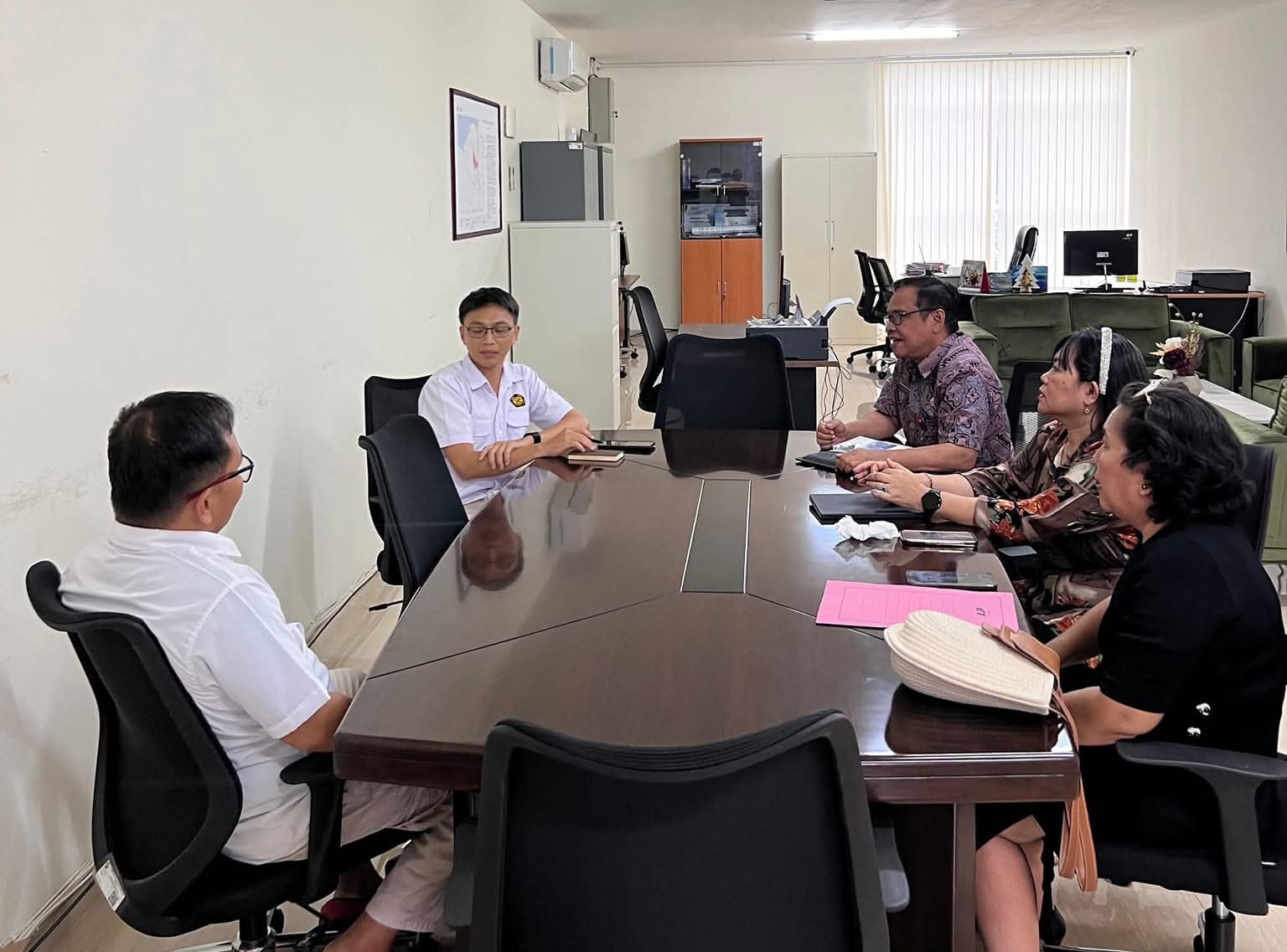 Kunjungan BPBD Minsel yang diwakili oleh Kaban Thorie Joseph dan Sekretaris Merry Rumerung diterima Fredy Vanly Kaligis Kasubbag Umum Balai Pemantauan Gunung Api dan Mitigasi Bencana Gerakan Tanah Sulawesi dan Maluku.