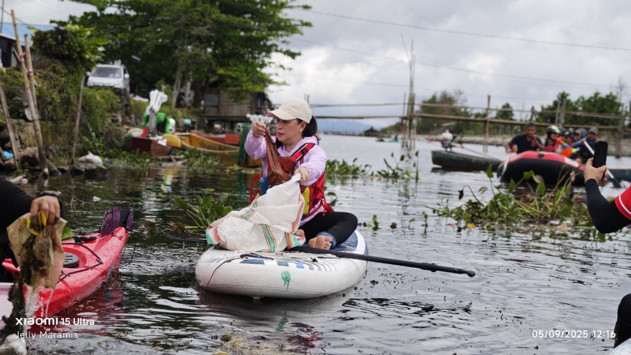 Tondano – Dalam rangka mempromosikan potensi wisata olahraga air di Danau Tondano, Wakil Bupati Minahasa, Ibu Vanda Sarundajang, bersama Asosiasi Wisata Air Sulawesi Utara, Tondano Paddle Club, dan FAJI Minahasa, melaksanakan kegiatan pengarungan Daerah Aliran Sungai (DAS) Tondano sekaligus aksi bersih-bersih sampah plastik, Jumat (…/09/2025).