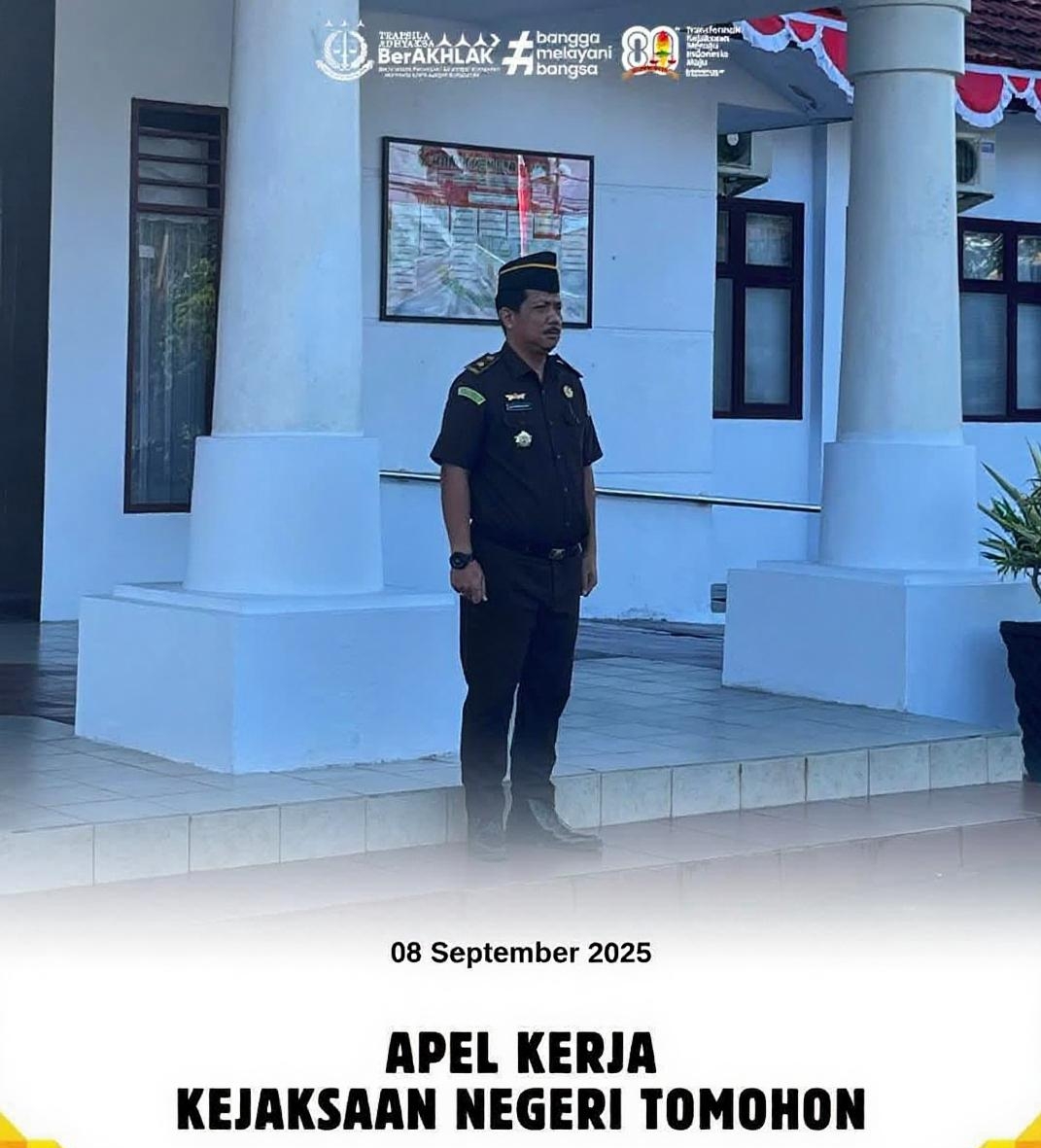 Global Berita, Tomohon — Kejaksaan Negeri (Kejari) Tomohon melaksanakan Apel Pagi Pegawai pada Senin, 8 September 2025, pukul 07.30 Wita di Lapangan Apel Kejari Tomohon.