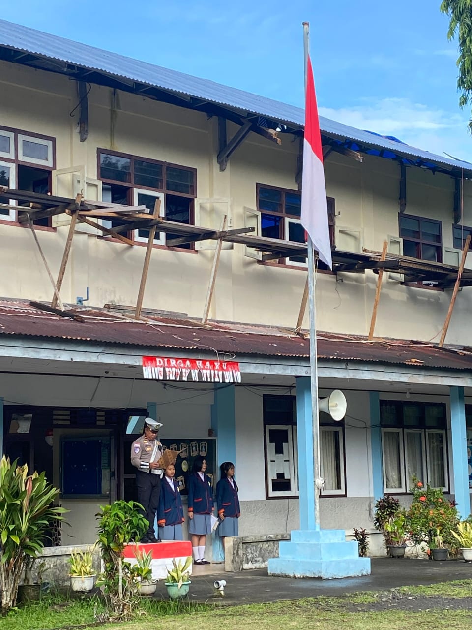 Kasatlantas Polres Kepulauan Sangihe IPTU Nelta Rengkung, S.Or yang diwakili oleh Kaur Bin Ops Satlantas, IPDA Jefry Lahamendu, bertindak sebagai inspektur upacara. Dalam amanatnya, ia menekankan pentingnya disiplin, kesadaran, serta sikap tertib berlalu lintas sejak dini agar para pelajar terhindar dari potensi kecelakaan di jalan raya.
