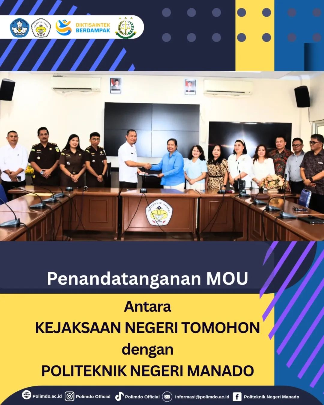 Sementara itu, Direktur Polimdo, Dra. Maryke Alelo, MBA, menyambut baik kemitraan ini sebagai langkah penting dalam meningkatkan relevansi pendidikan vokasi di Polimdo. “Kerja sama dengan Kejari Tomohon akan membuka peluang bagi mahasiswa kami untuk mendapatkan pengalaman belajar yang lebih aplikatif dan berbasis kebutuhan nyata di lapangan, sehingga mereka lebih siap menghadapi tantangan dunia kerja,” kata Maryke Alelo.