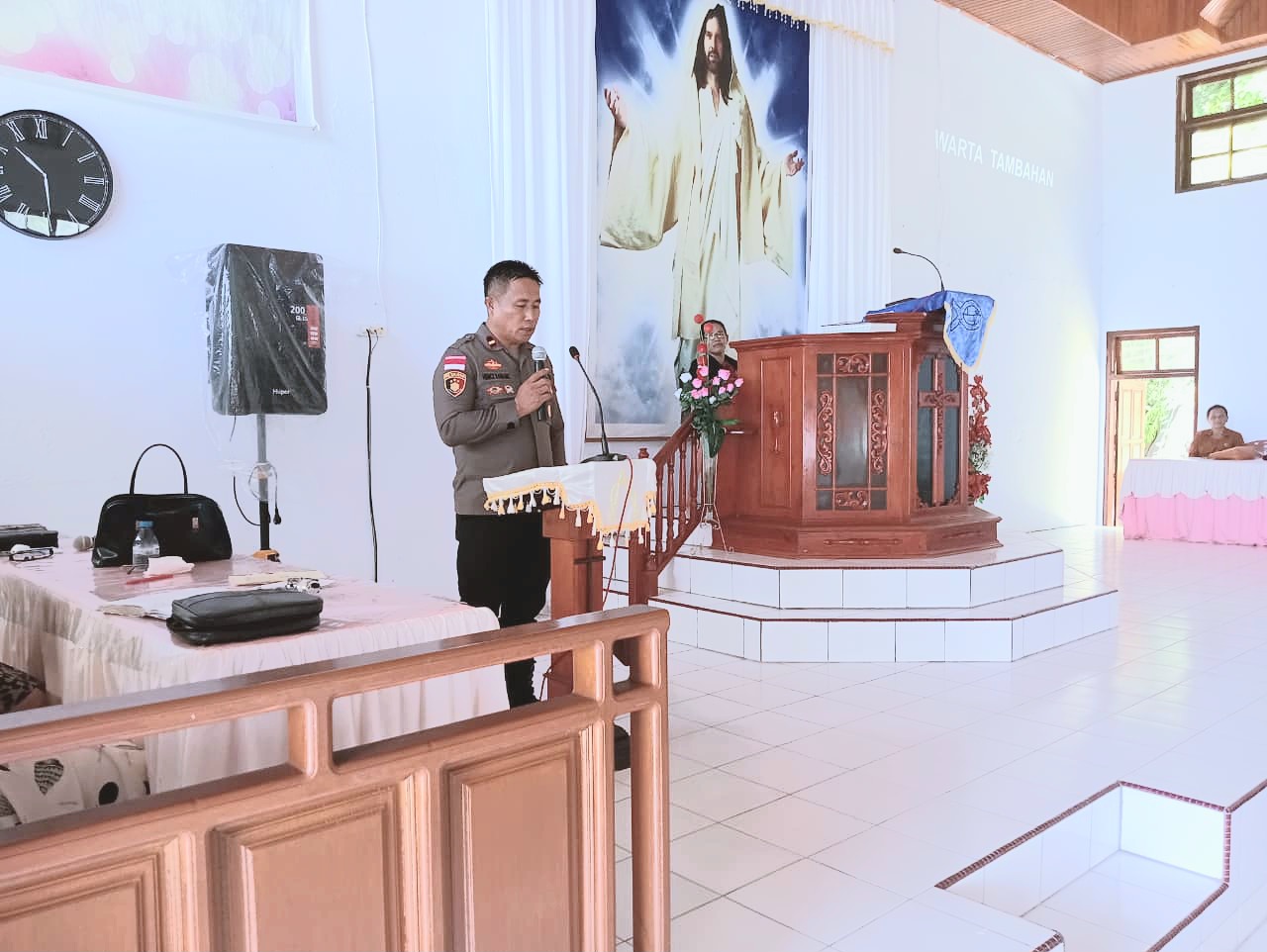 Dalam sambutannya, IPDA Kaware menyampaikan sejumlah imbauan kamtibmas. Ia mengajak masyarakat untuk bersama-sama menjaga keamanan dan ketertiban, bijak menggunakan media sosial, menjauhi praktik perjudian, serta tidak terprovokasi isu-isu terkait aksi demonstrasi nasional. Selain itu, ia mengingatkan warga agar menghindari konsumsi minuman keras berlebihan yang berpotensi memicu tindak pidana.