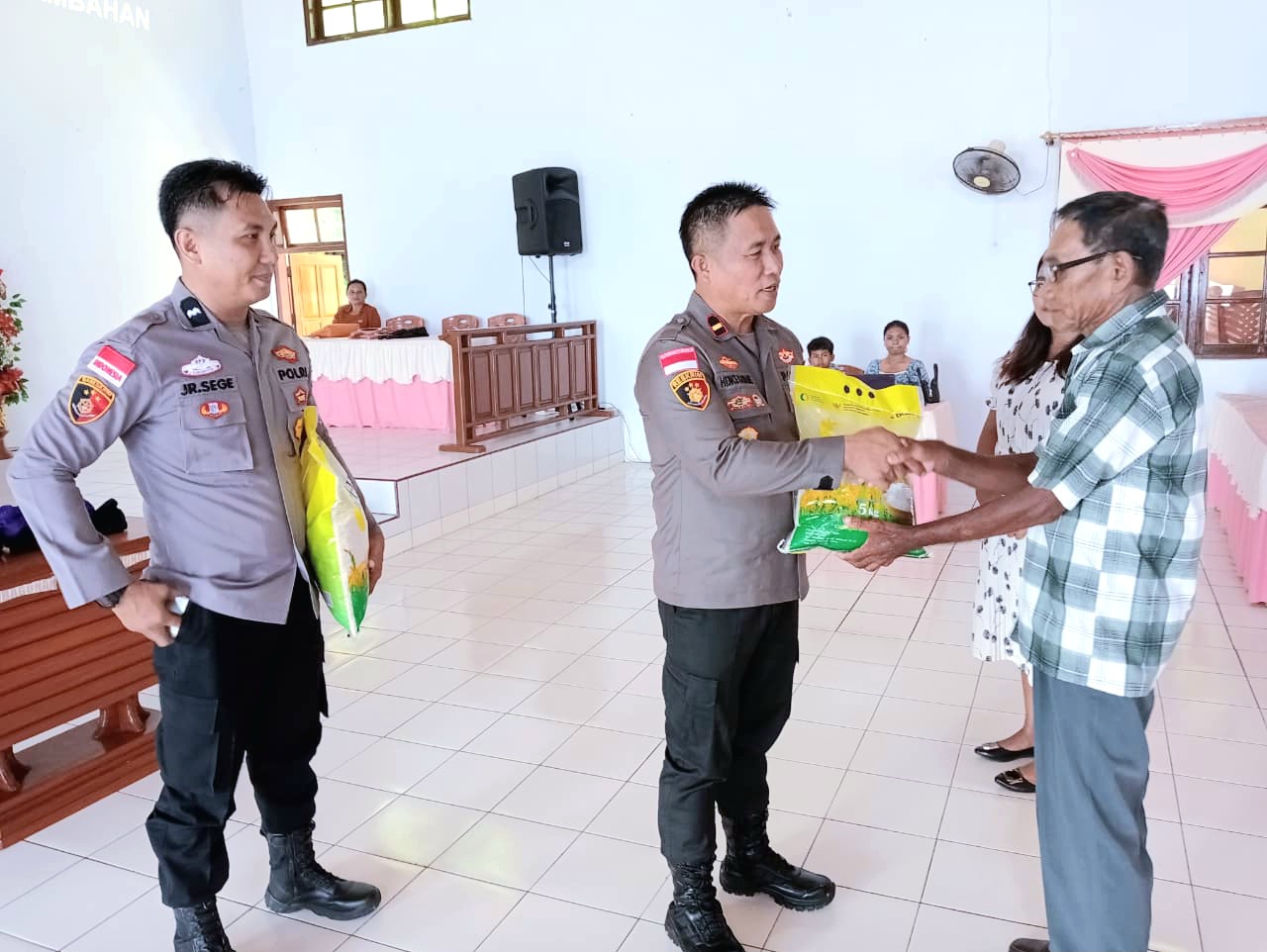 Dalam kesempatan tersebut, Polsek Manganitu Selatan turut menyalurkan bantuan sosial berupa beras SPHP kepada dua warga lanjut usia.
