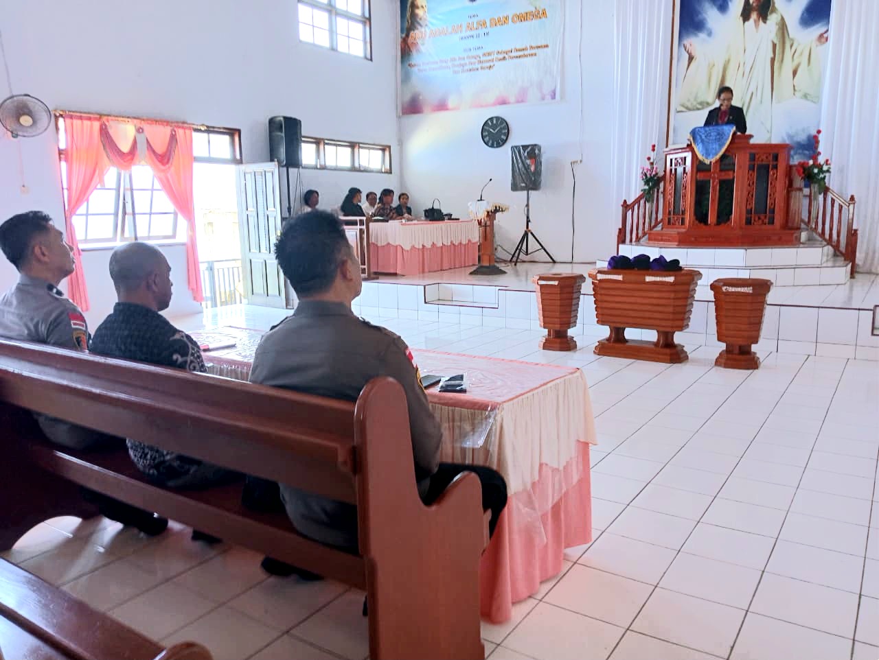 Kapolsek Manganitu Selatan, IPDA Hantje Kaware, S.H., hadir bersama jajaran Polsek di antaranya Kanit Binmas Aiptu A. Masambe, Kanit Reskrim Aipda Jegi R. Sege, Kanit Propam Bripka J. Lombongpato, dan Bhabinkamtibmas Bripka Jimison Ladi Talu. Kegiatan tersebut juga dihadiri Kapitalaung Kampung Bebalang Muksin Madundang, Ketua Jemaat GMIST Emaus, Majelis Pekerja Jemaat, serta warga jemaat setempat.