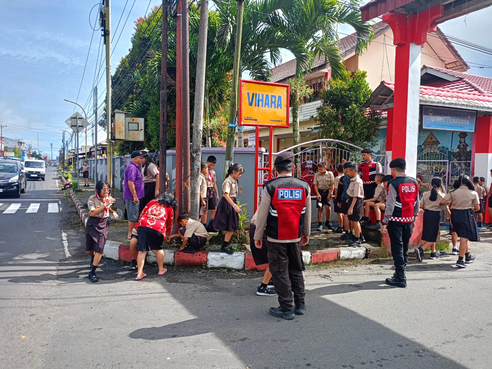Sat Samapta Polres Tomohon Gercep Amankan Kegiatan Siswa SD Dekat Jalan Raya