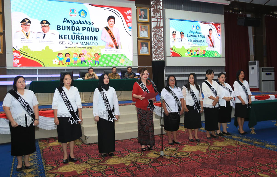 Sementara itu, Bunda PAUD Kota Manado Irene Golda Angouw Pinontoan dalam sambutannya menyampaikan bahwa pengukuhan ini bukan hanya seremonial, melainkan panggilan tanggung jawab. Para Bunda PAUD diharapkan menjadi teladan dalam menggerakkan partisipasi masyarakat serta memperkuat sinergi antara keluarga, sekolah, dan lingkungan.