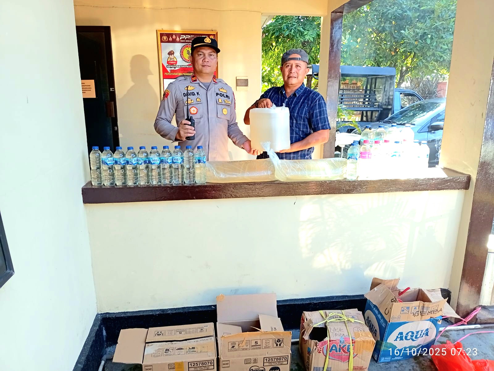 Dalam operasi yang berlangsung sejak pukul 04.00 WITA hingga 07.30 WITA, polisi menemukan puluhan liter minuman keras jenis cap tikus di penitipan barang di dua kapal motor mercy teratai dan kapal motor barcelona.