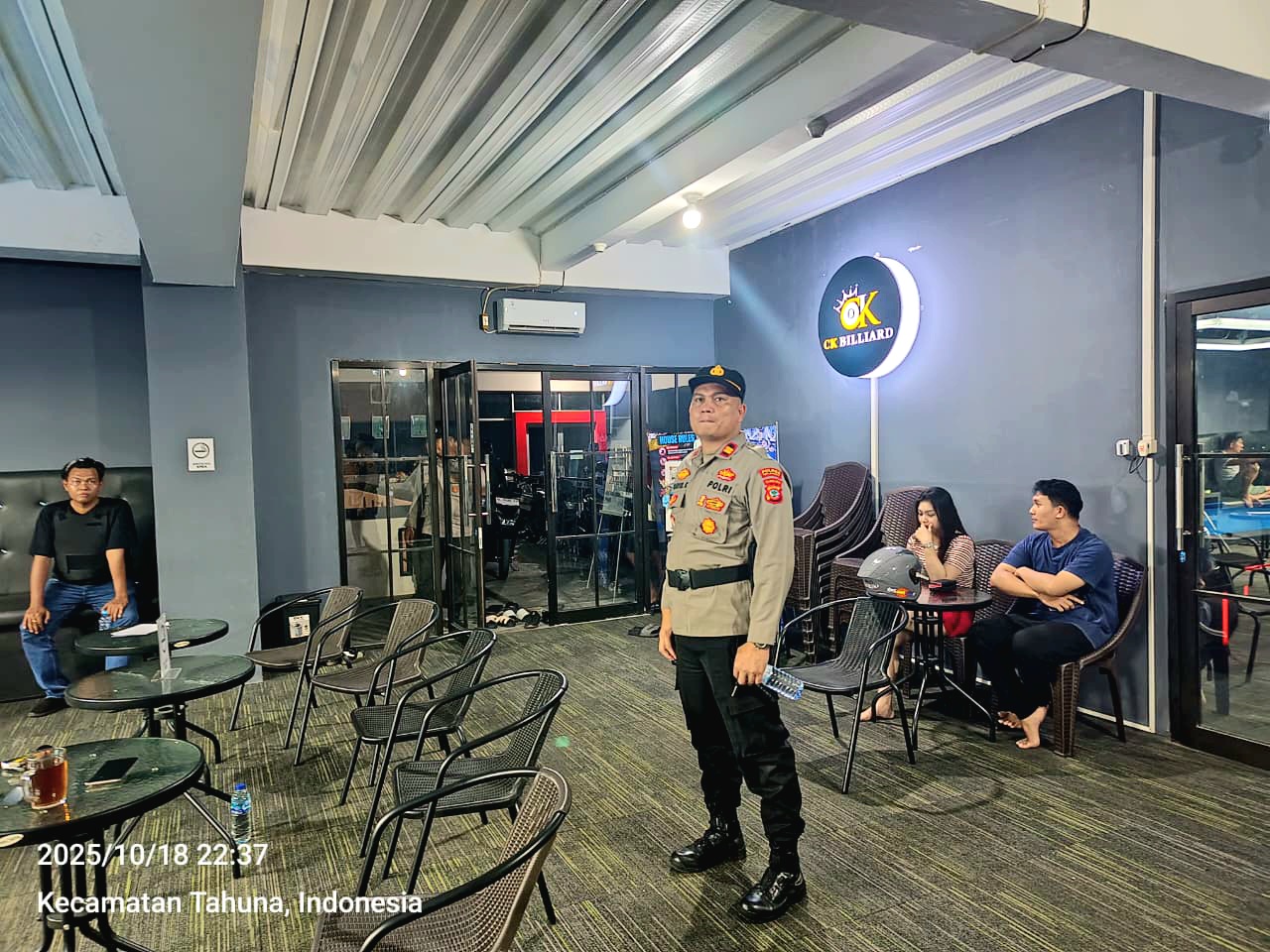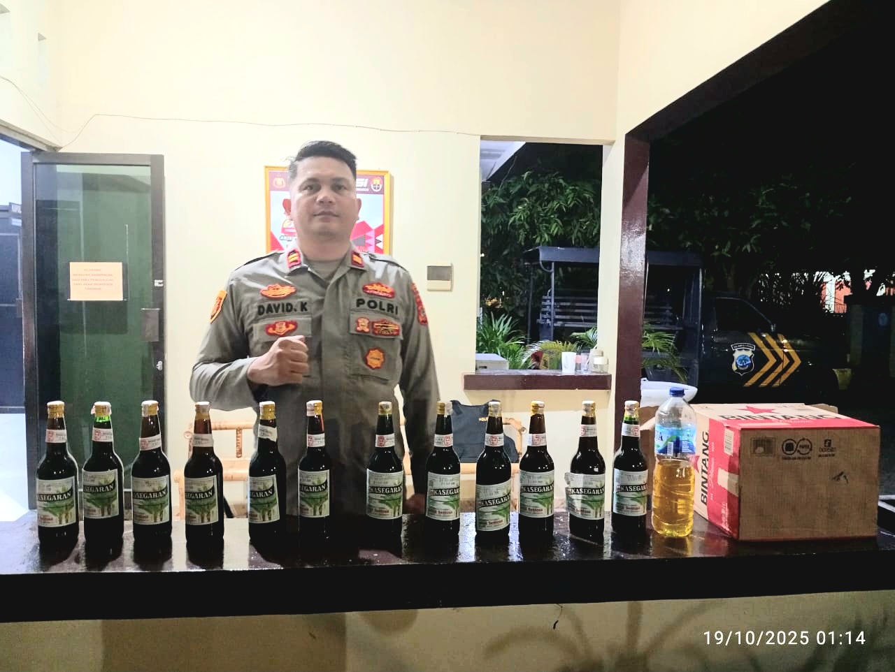 SANGIHE, GLOBALBERTITA– Dipimpin Kapolsek Tahuna Iptu David Kojongian, S.H bersama personil melaksanakan patroli rutin cipkon (cipta kondisi) simkamtibmas menyasar beberapa titik rawan terjadi situasi tidak diinginkan dan minimarket bahkan warung kecil dengan target utama penjualan minuman keras (miras) ilegal di wilayah hukum Polres Kepulauan Sangihe, Sabtu, (18/10/2025).