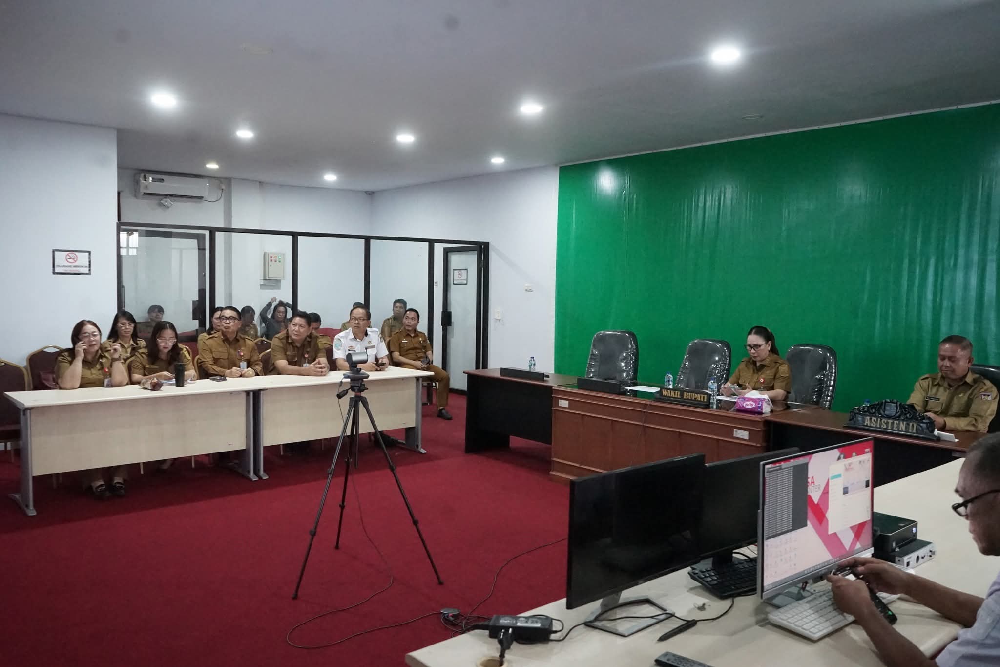Rapat yang digelar di Ruang Command Center Kantor Bupati Minahasa tersebut turut dihadiri oleh Asisten Perekonomian dan Pembangunan, Staf Ahli Bupati Bidang Kemasyarakatan dan SDM / Plt. Kadis Pangan, serta sejumlah pimpinan perangkat daerah, antara lain Kadis Koperasi dan UKM, Kadis Sosial, Kadis Kominfo, Kadis Perdagangan, dan Kadis Perhubungan.