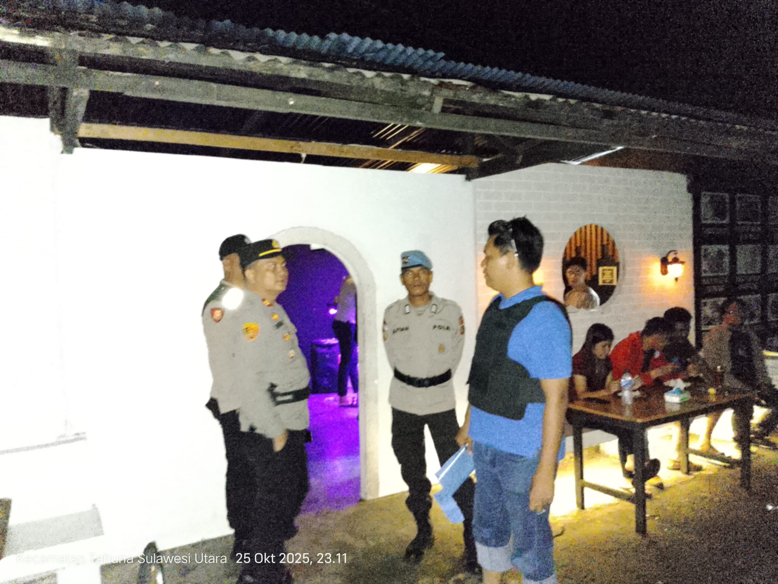 SANGIHE, GLOBALBERITA– Dipimpin Kapolsek Tahuna IPTU David Kojongian, S.H bersama personil melaksanakan patroli rutin cipkon (cipta kondisi) simkamtibmas menyasar warung kecil dan minimarket dengan target utama penjualan minuman keras (miras) serta antisipasi sajam di tempat- tempat keramaian di wilayah hukum Polres Kepulauan Sangihe, Sabtu, (25/10/2025).