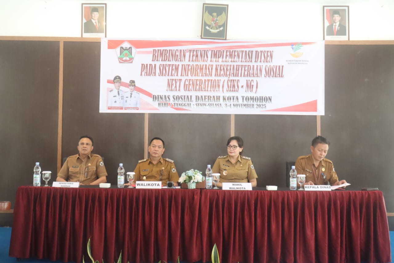 TOMOHON – Pemerintah Kota Tomohon menggelar kegiatan Peningkatan Kapasitas Sumber Daya Operator Pengisi Data Kelurahan pada Sistem Informasi Kesejahteraan Sosial (SIKS-NG) di Grand Master Tomohon, Selasa (4/11/2025). Kegiatan ini bertujuan untuk meningkatkan kemampuan operator kelurahan dalam mengelola data kesejahteraan sosial agar lebih valid dan akuntabel.
