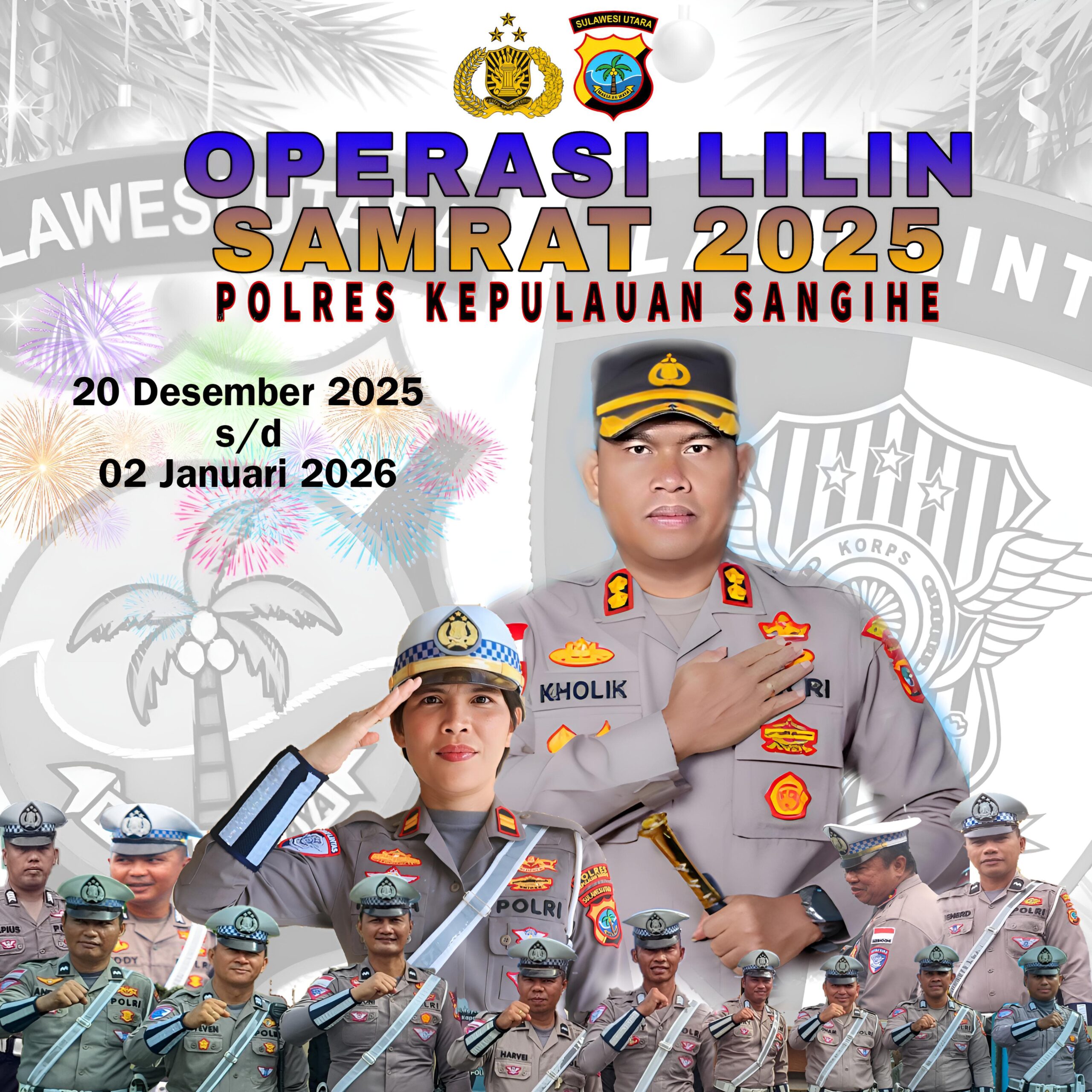 SANGIHE, GLOBALBERITA– Operasi Lilin Samrat 2025 dimulai hari ini hingga 2 Januari 2026, Operasi Lilin adalah sebutan dari kegiatan yang dilakukan oleh Kepolisian Republik Indonesia (Polri) untuk menjaga ibadah Natal.